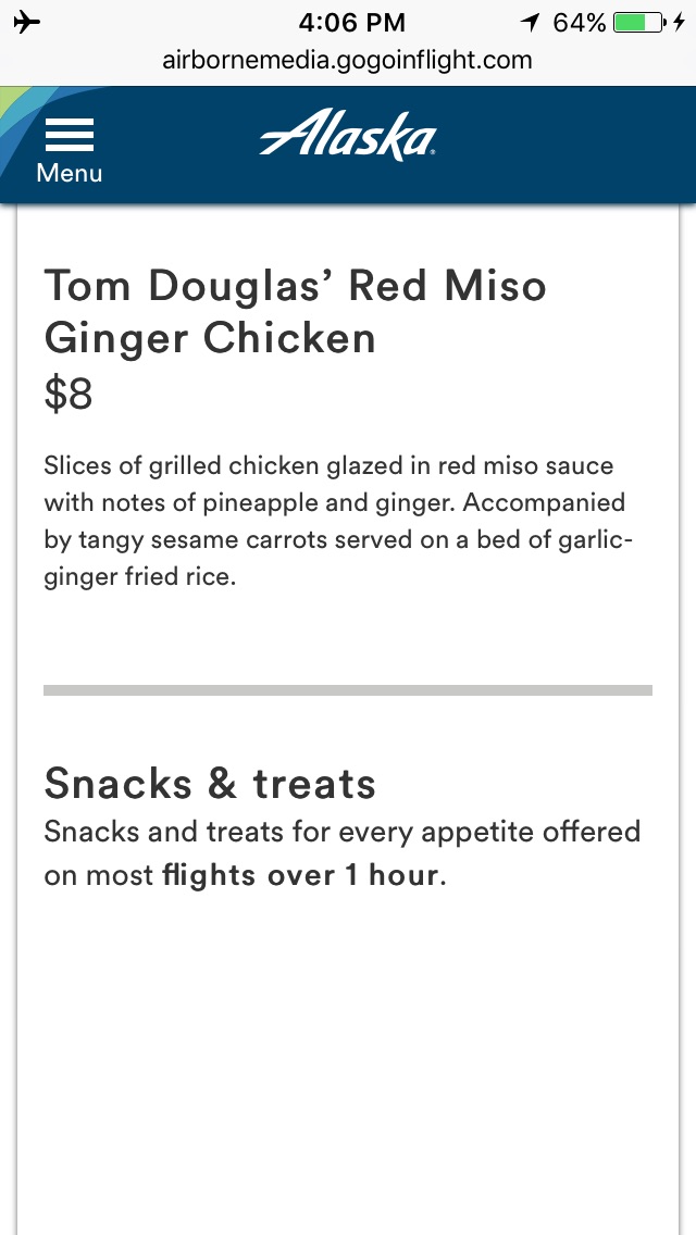 Alaska Airlines Buy on Board Menu through the Alaska Airlines App