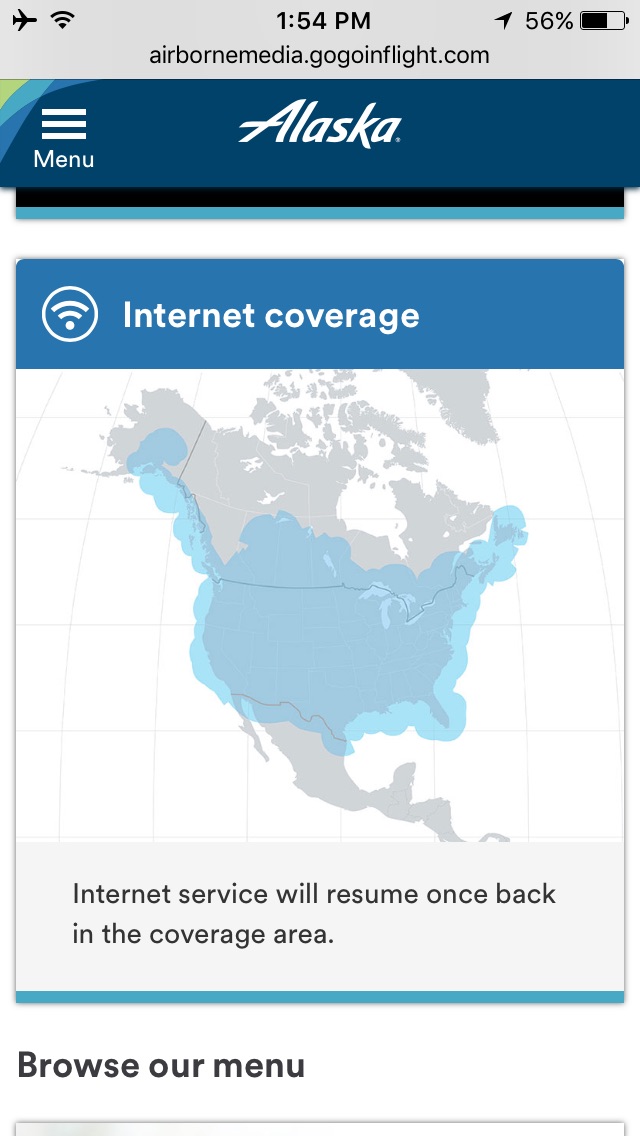 The first lunch service started within a prompt forty five minutes after departure. The buy on board menu was available through the Alaska Airlines App and through the go go in flight internet.