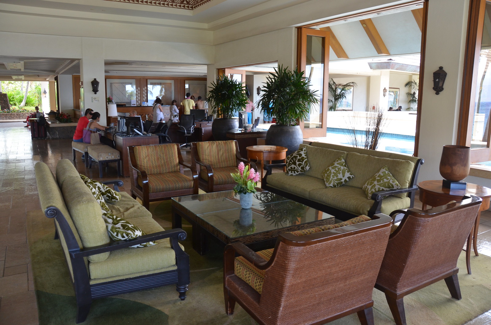 We unloaded ourselves at the porte cochère. Unfortunately, there was only 1 check in desk host working at 5 PM when we arrived. Per usual, there was a marked but unmanned Gold and Plat check in line. We joined the general queue and were helped after about 5 -7 minutes. The lobby is an open air lobby, which is terrific and just the thing to put you in the resort mood after arriving to your property.