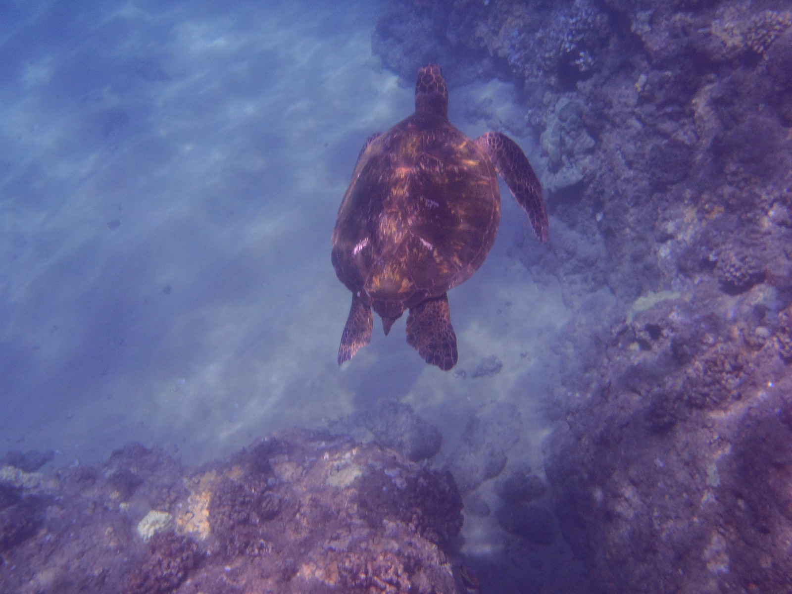 There were sporadic sightings of yellow fishes, angle fish and the silver guys with the blue stripe. Those are the non- technical names – I am sure a marine biologist can correct me with the right names. The corals themselves looked pretty tired and dead. What there wasn’t in the in the way of plentiful fish, there were heaps of Turtle sightings. We had at least 5 separate sightings at the hotel from shore which was a surprising bonus. Kaanapali has topped the global list over Oman and French Polynesia in the frequency of turtles!!
