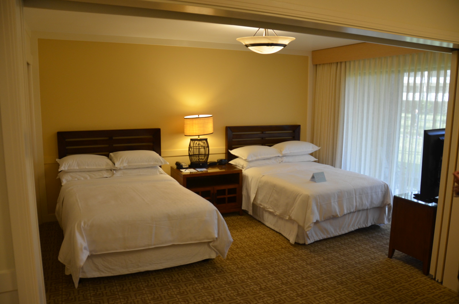 After the expensive French Polynesian & Fiji Adventure, I had booked a simple resort room in the lowest category available. I thought that we would chance it and use elite Suite Night Awards for any upgrades and hoped for the best with the Sheraton being a very large property with many categories of rooms (partial ocean view, full ocean view, suites, family suites etc..) My Suite Upgrades were declined at the 5 day mark but on check in, we got a super duper SPG Platinum upgrade to a family suite in the O’Hana Hale building with two double beds (#1109). I was super happy with that as they retailed for about $668 USD after taxes and our rate was only about $220 USD per night.