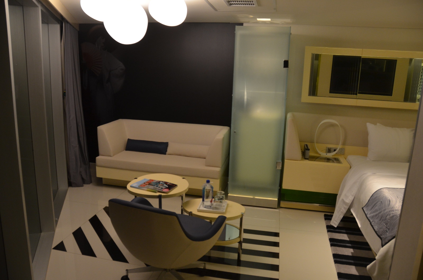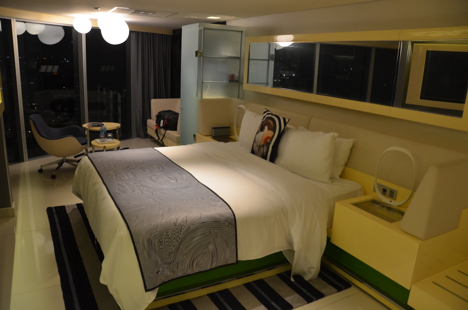 Arriving to the W, the first impressions are of a sleek and contemporary lobby. It usually had vibe music running through the place.