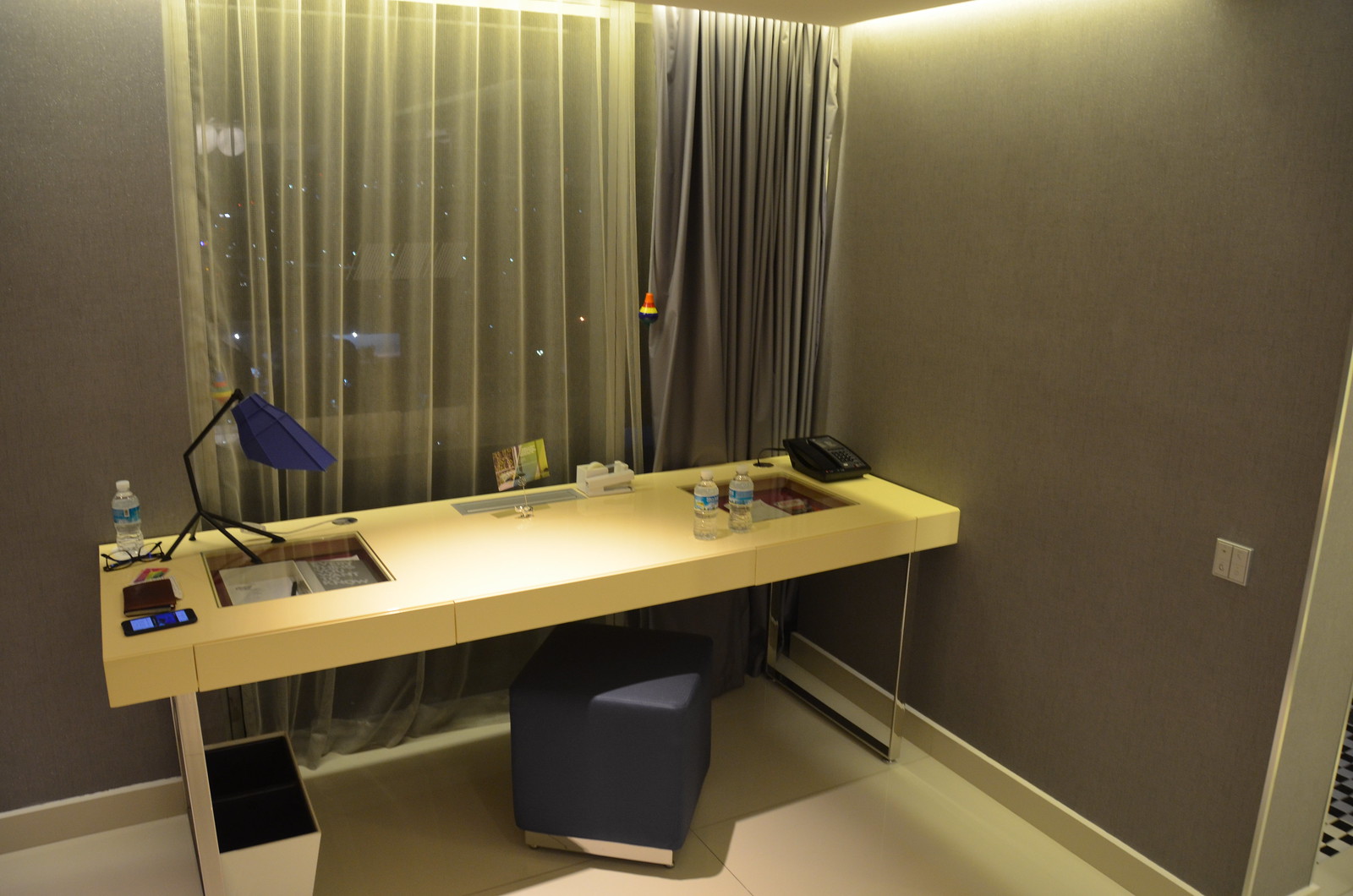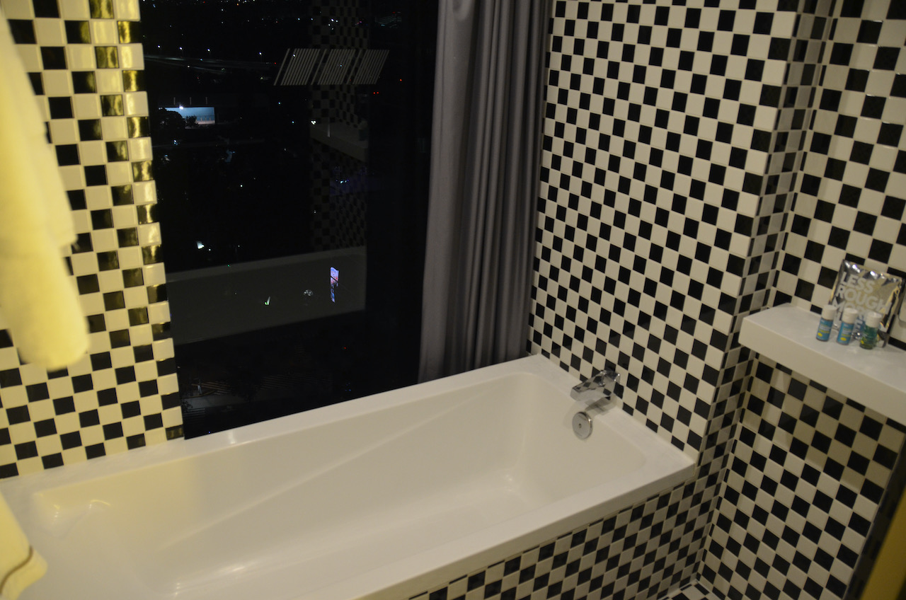 The hotel floors go up to the 25th floor and the top floors are the lofts. The Executive Suite was an interestingly decorated room with windows on both sides and the bathroom in the middle.