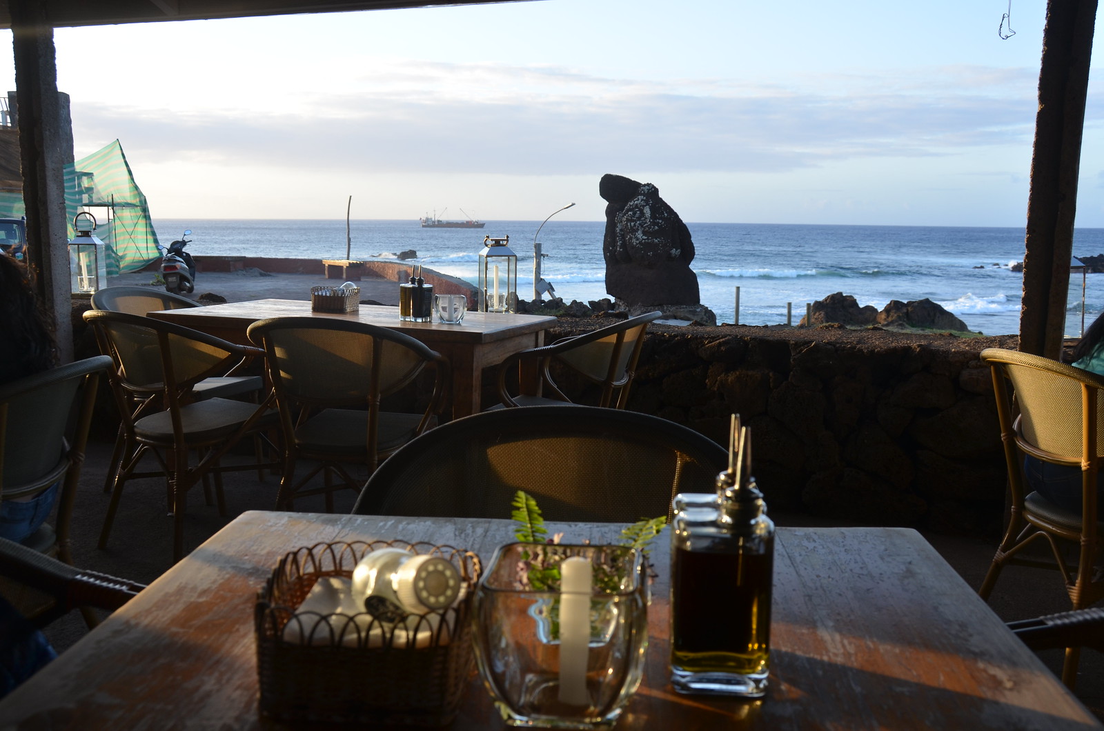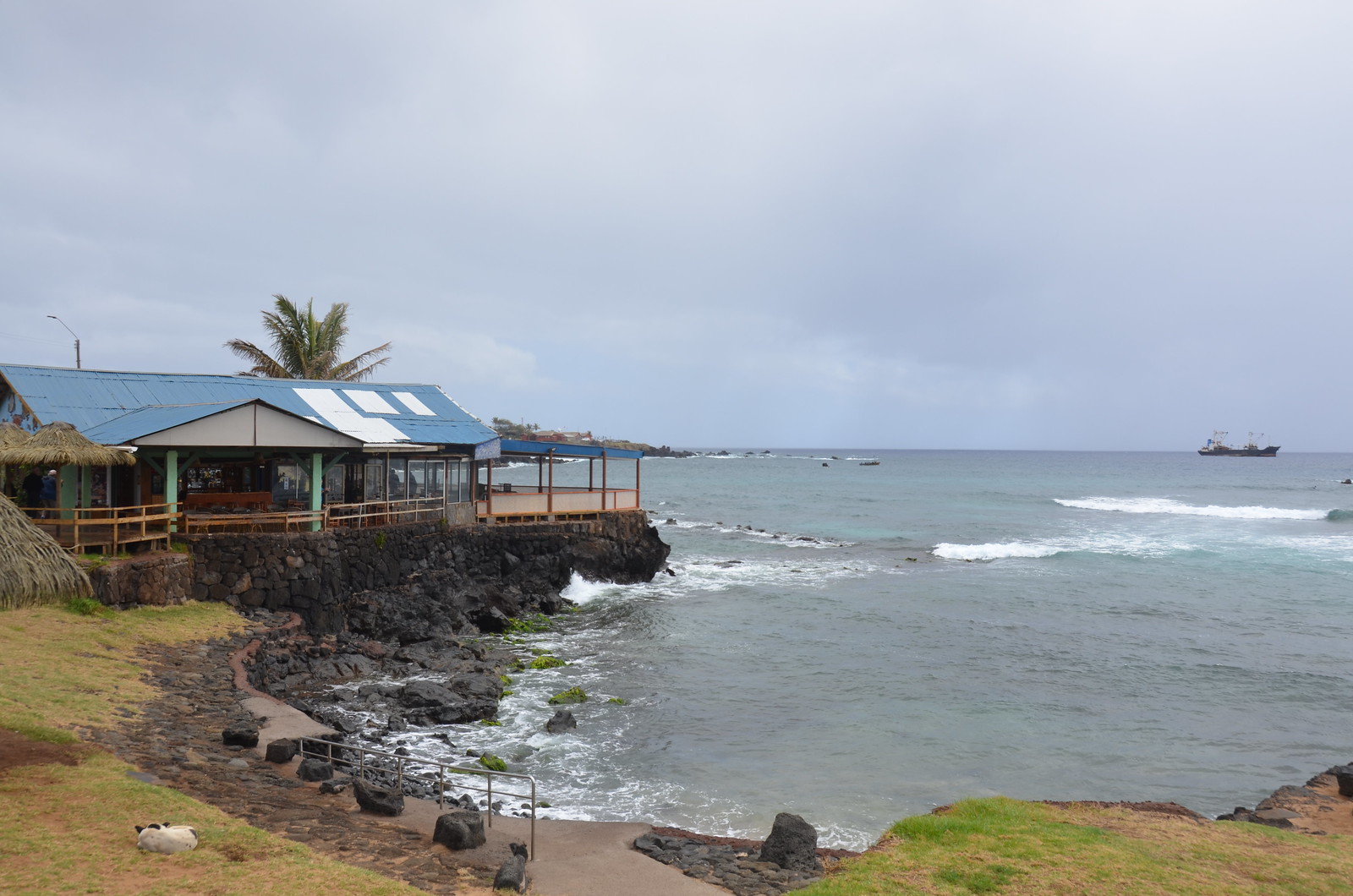 We were a bit snacky so we headed down to the water to seek out some food. We took in a view of the harbour, seeing our first moai that was implanted and placed against the harbour. There were a few small fishing boats and other small boats that were perhaps used for tour groups.