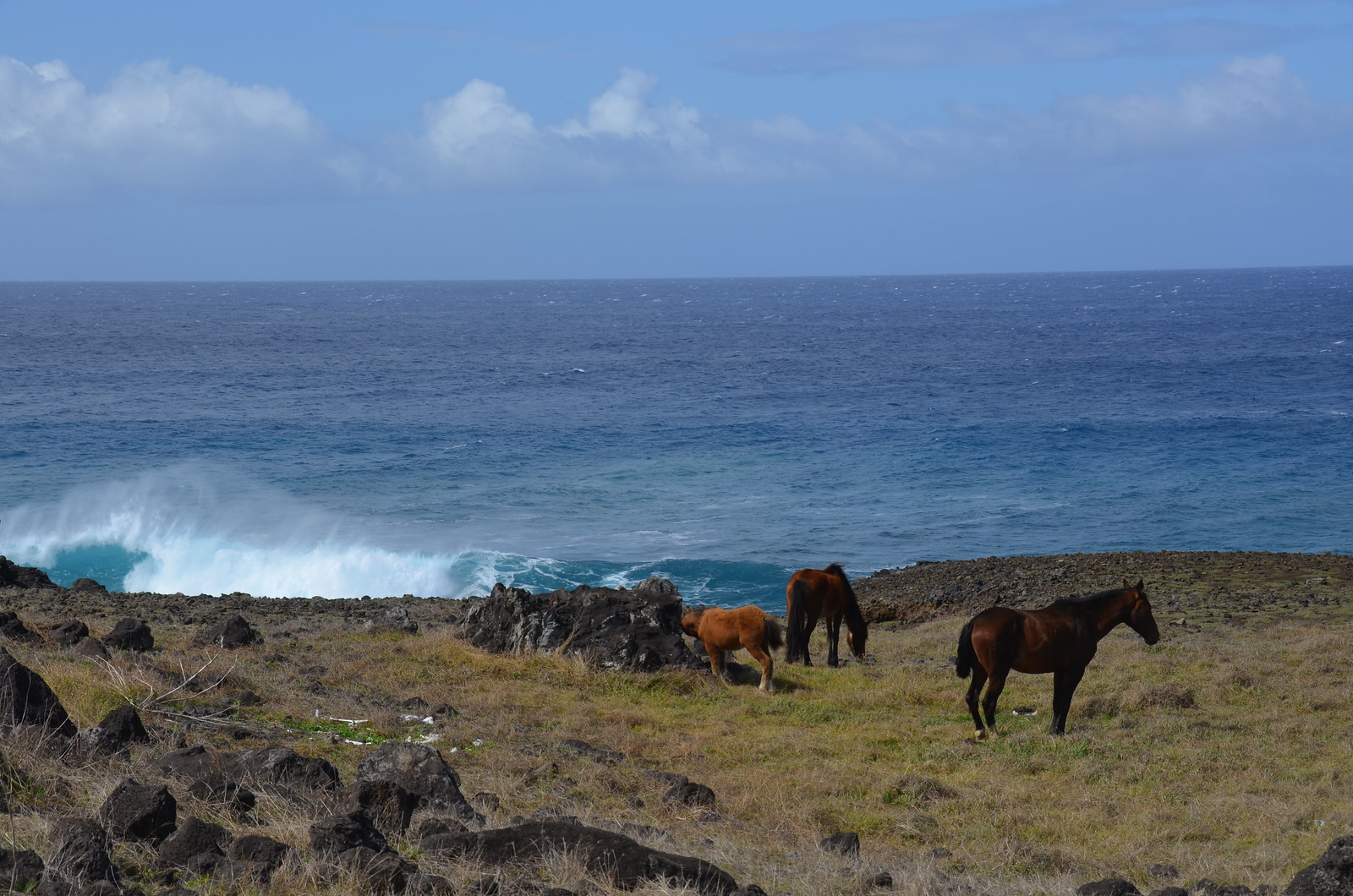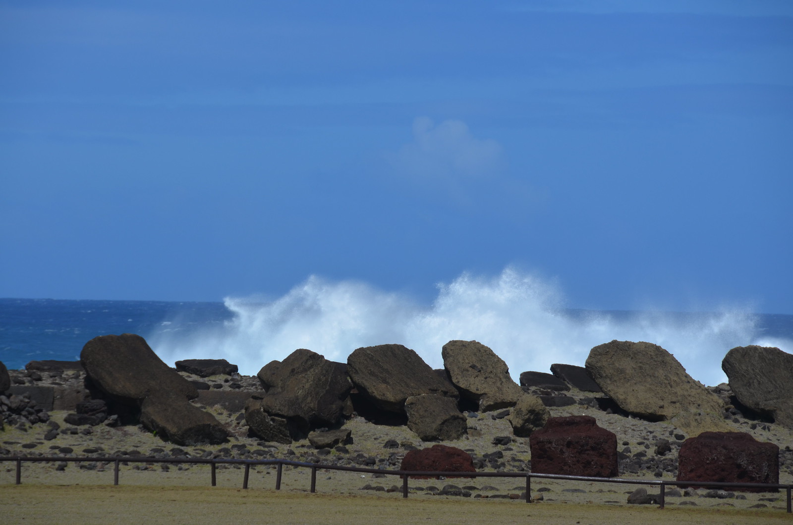 We then left the spectacular sites of Ahu Tonjariki and headed counterclockwise around the island. We ended up on some rural road that seemed to be away from the few white tour vans. The road followed the coast line and contained super frothy white surf all along. We of course stopped for a few photographs along the way.