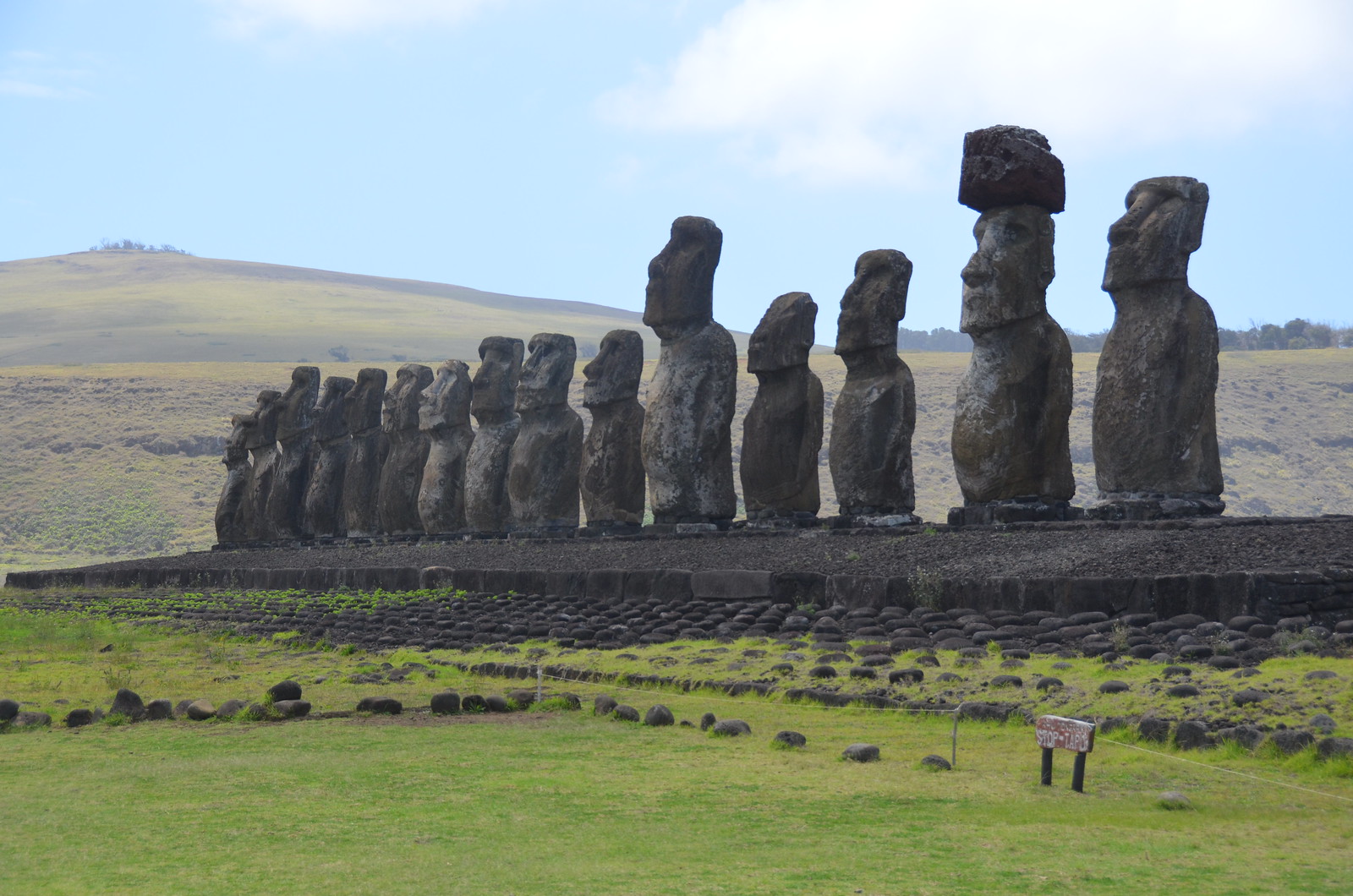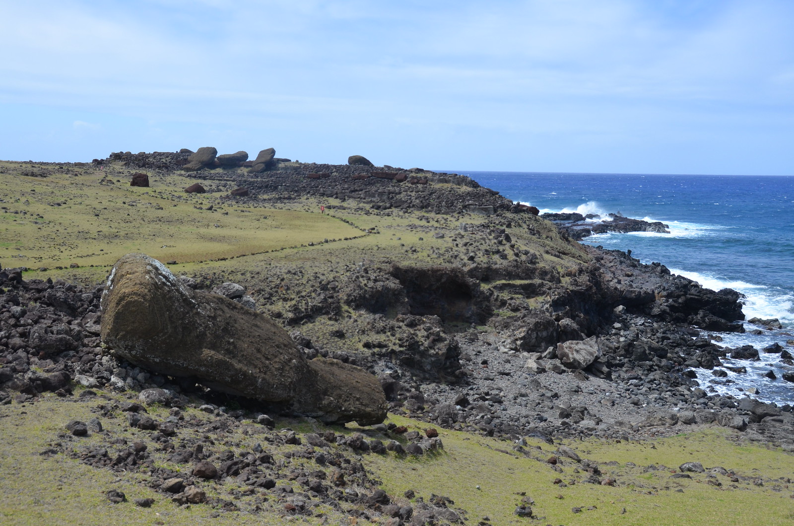 Strangely, there was a sixteenth moai lying nearby. There was apparently room on the ahu platform for it but it never made it there.