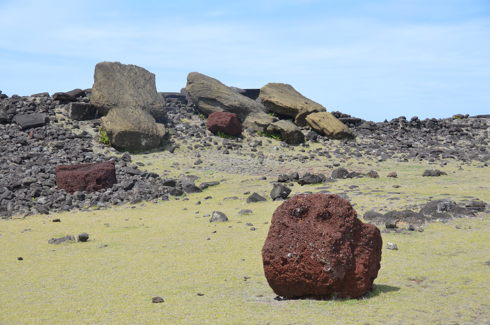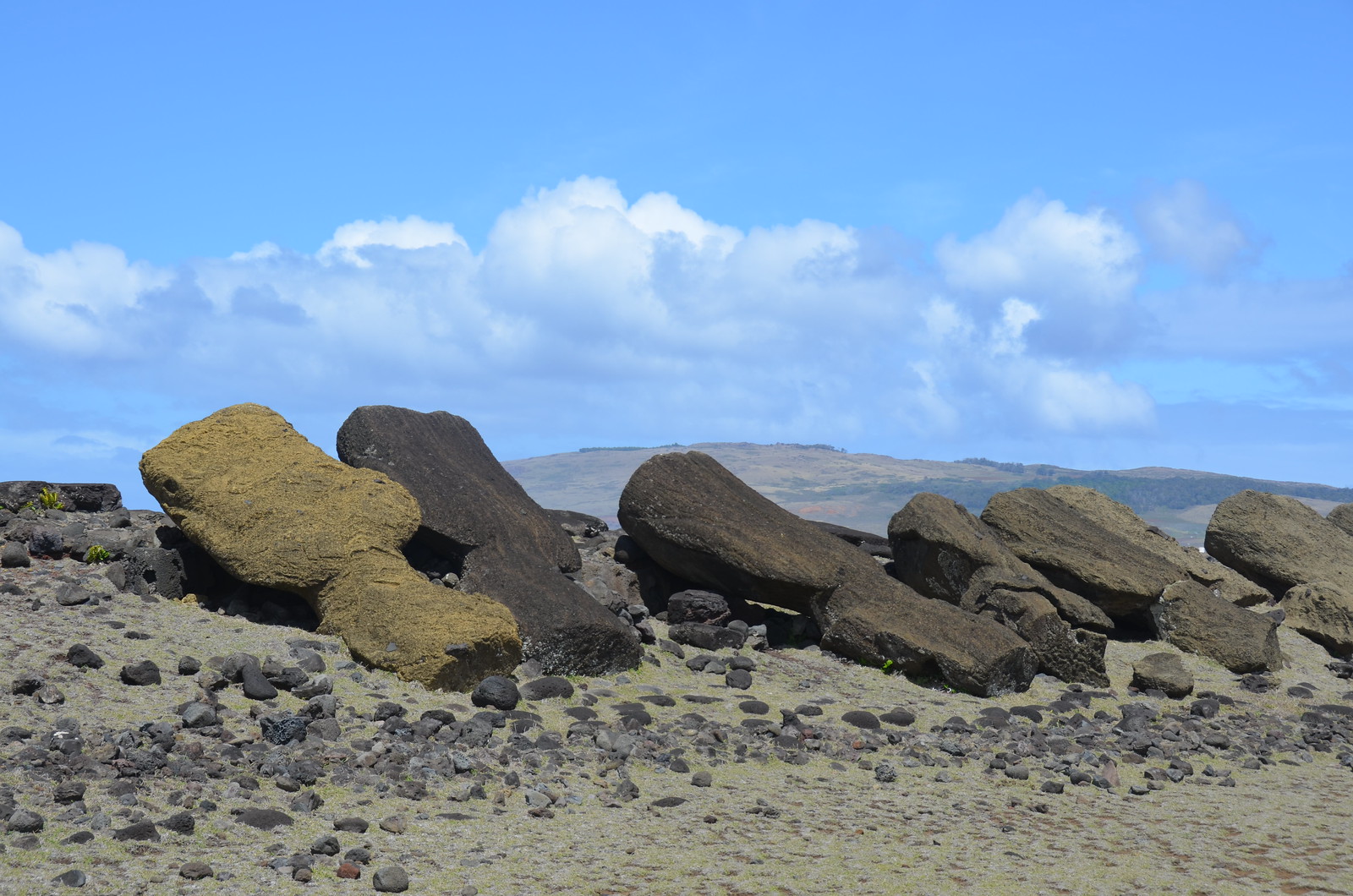Felled Moai at the Akahanga Village: