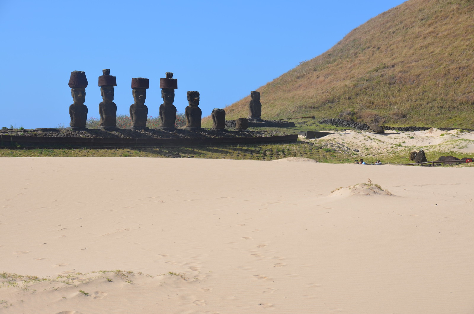 There are also several moai nearby on an ahu with a wind swept field of sand in front of them. Four out of the five had top knots which was an unusually high percentage