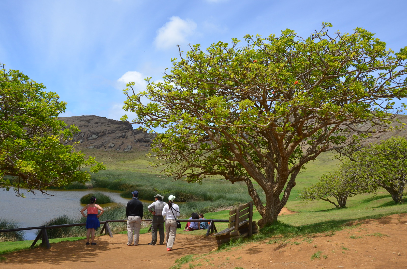 We climbed about 10 minutes up to the crater and discovered a crater basin. There were yet another series of moai statues in the top side of the mountain. We were not able to get too close to these. We just appreciated their view from the distance.