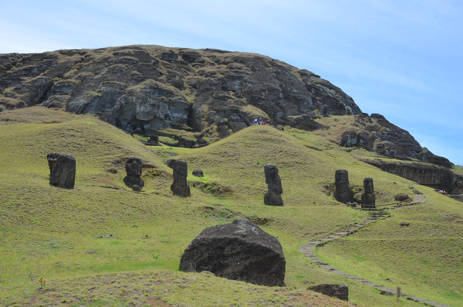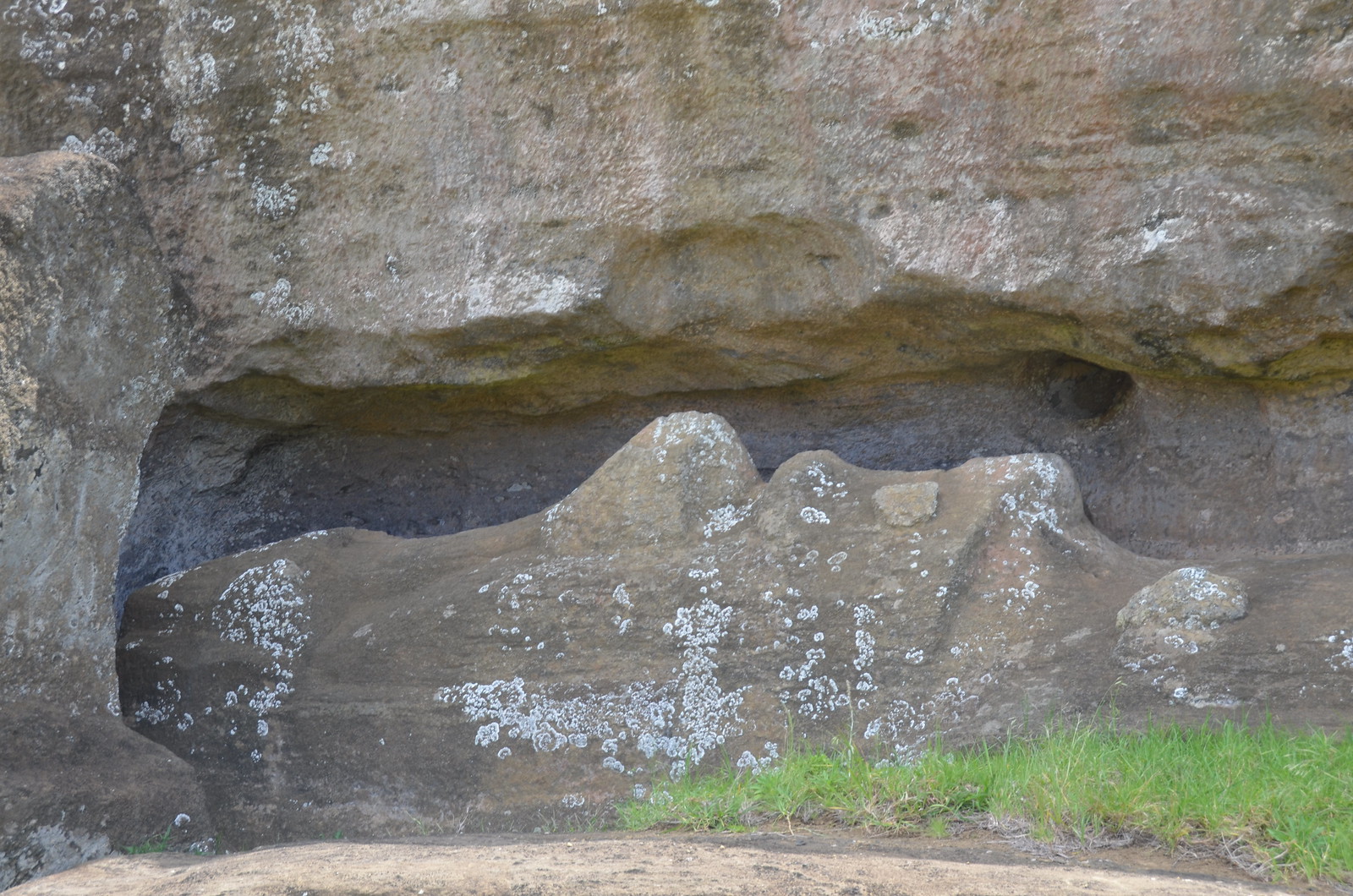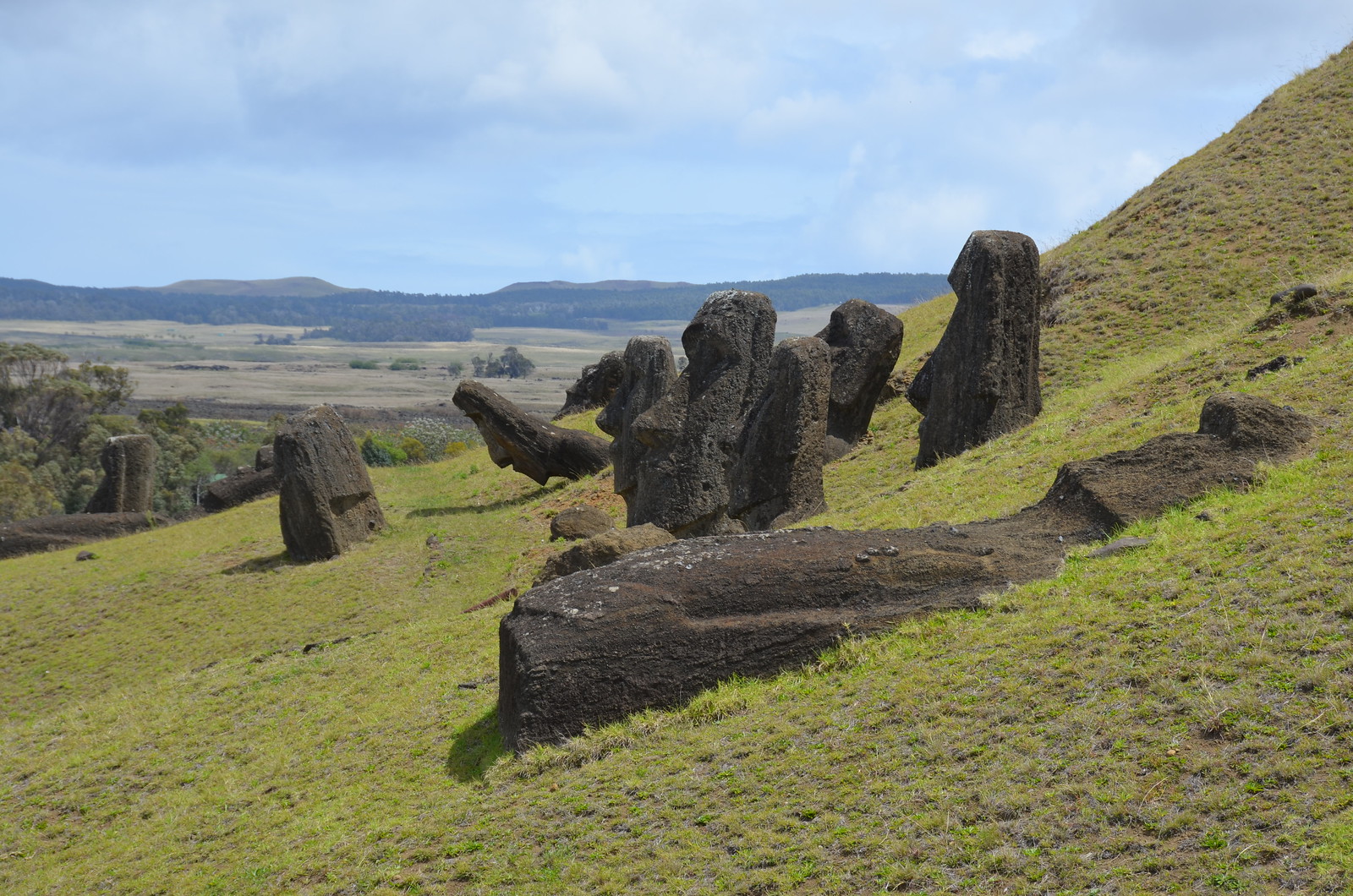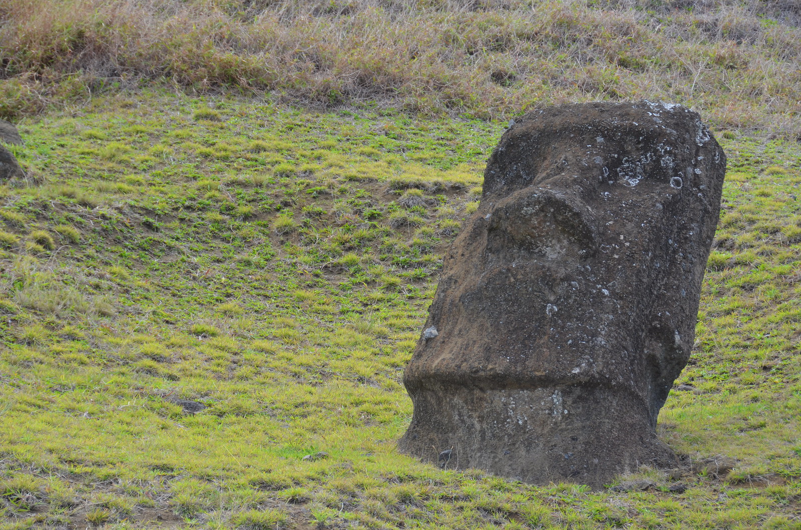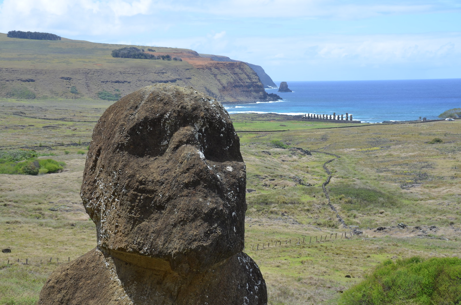 The last 16th moai lay nearby and did not get placed when they all of a sudden stopped construction.