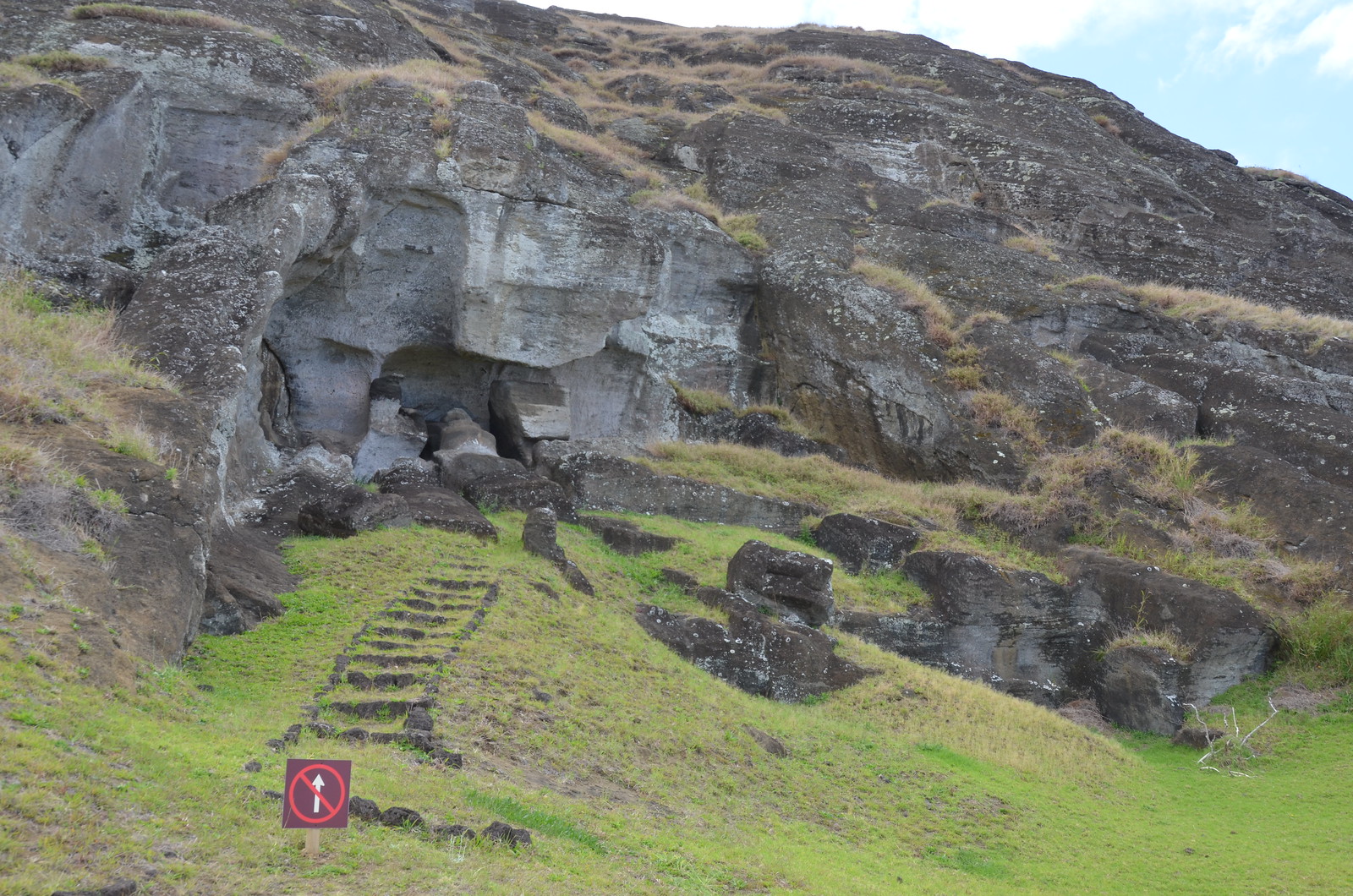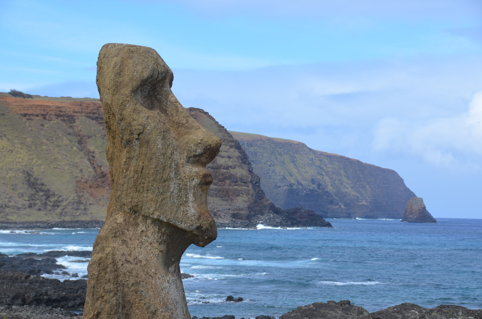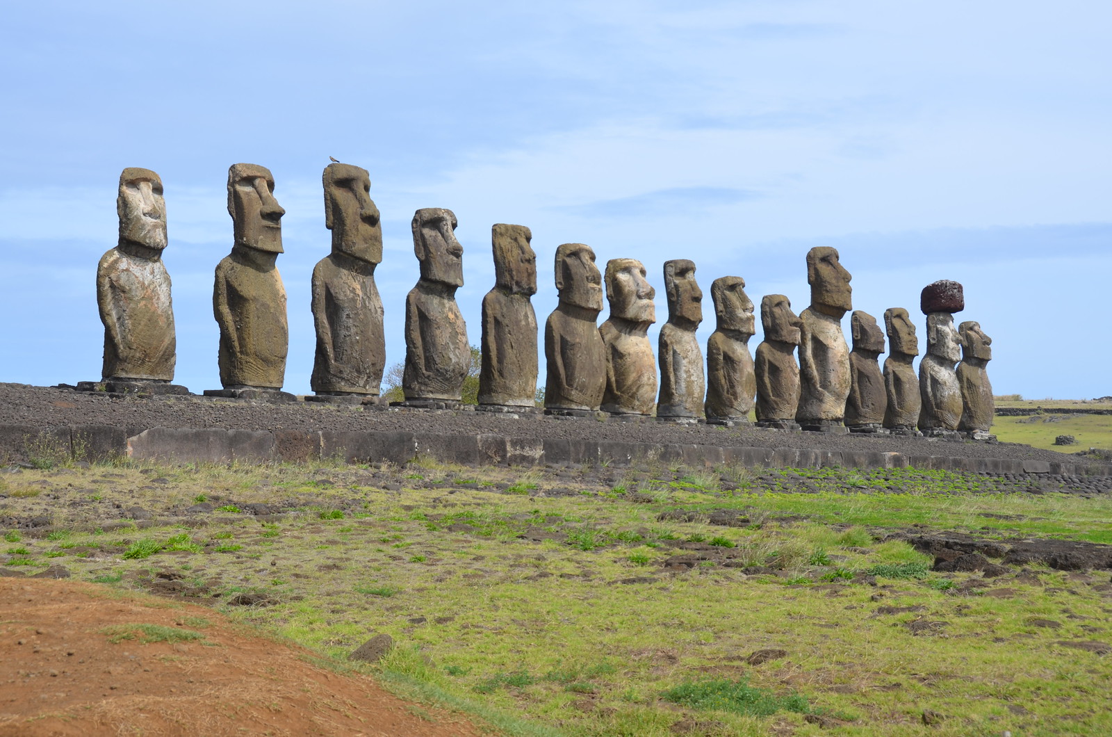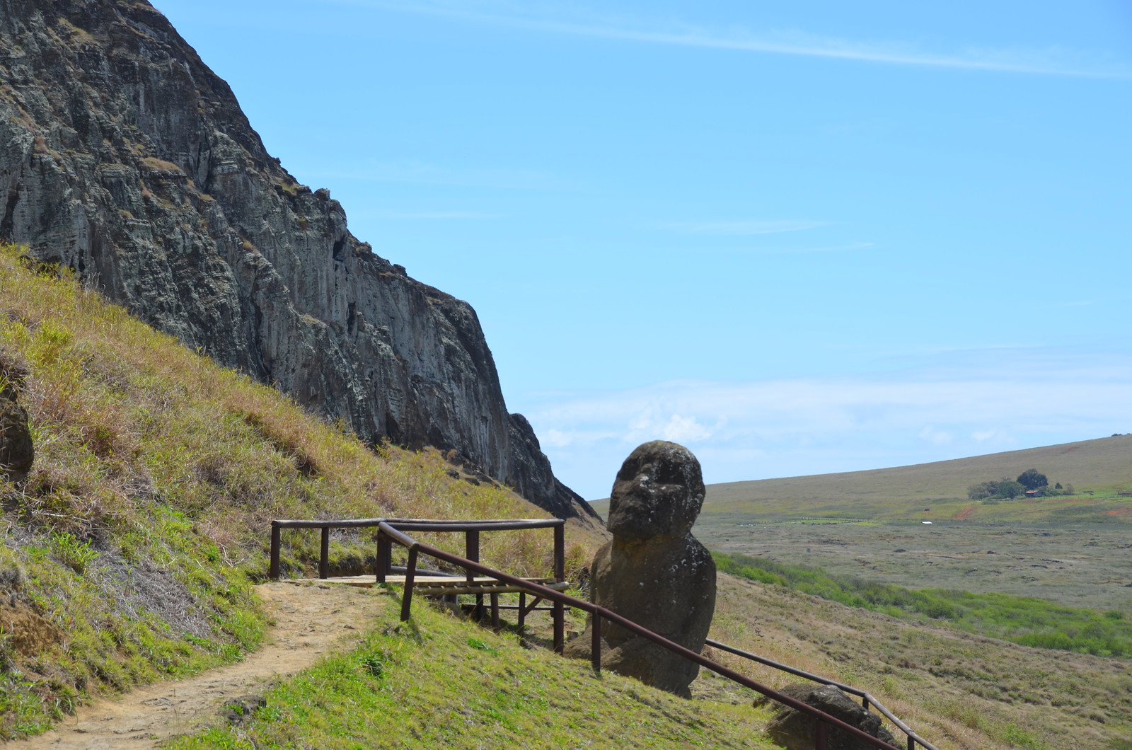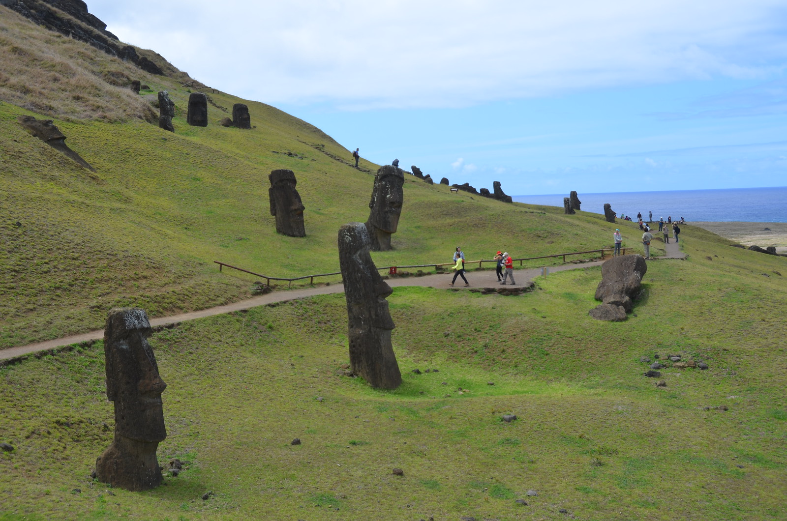 The last 16th moai lay nearby and did not get placed when they all of a sudden stopped construction.