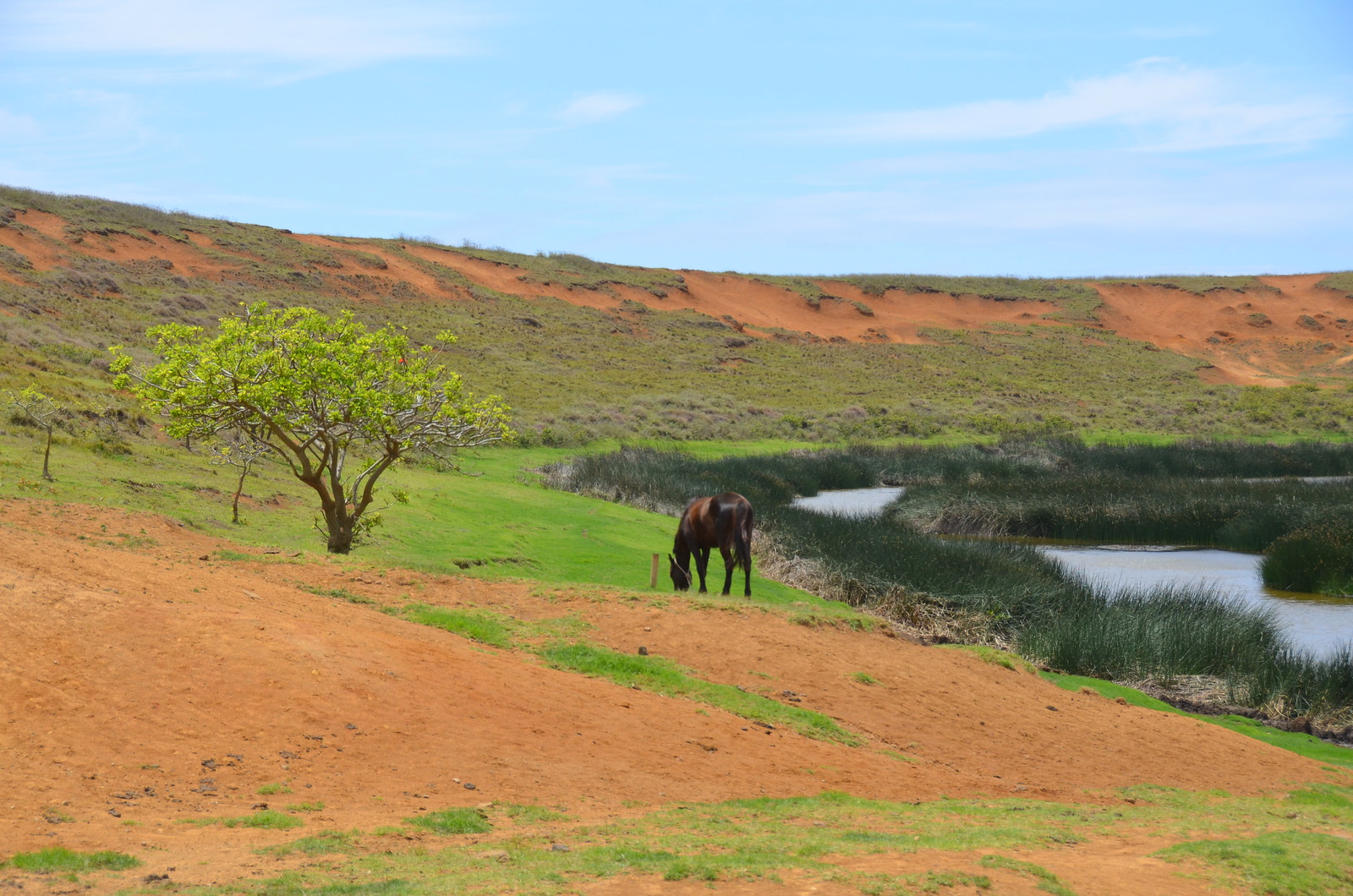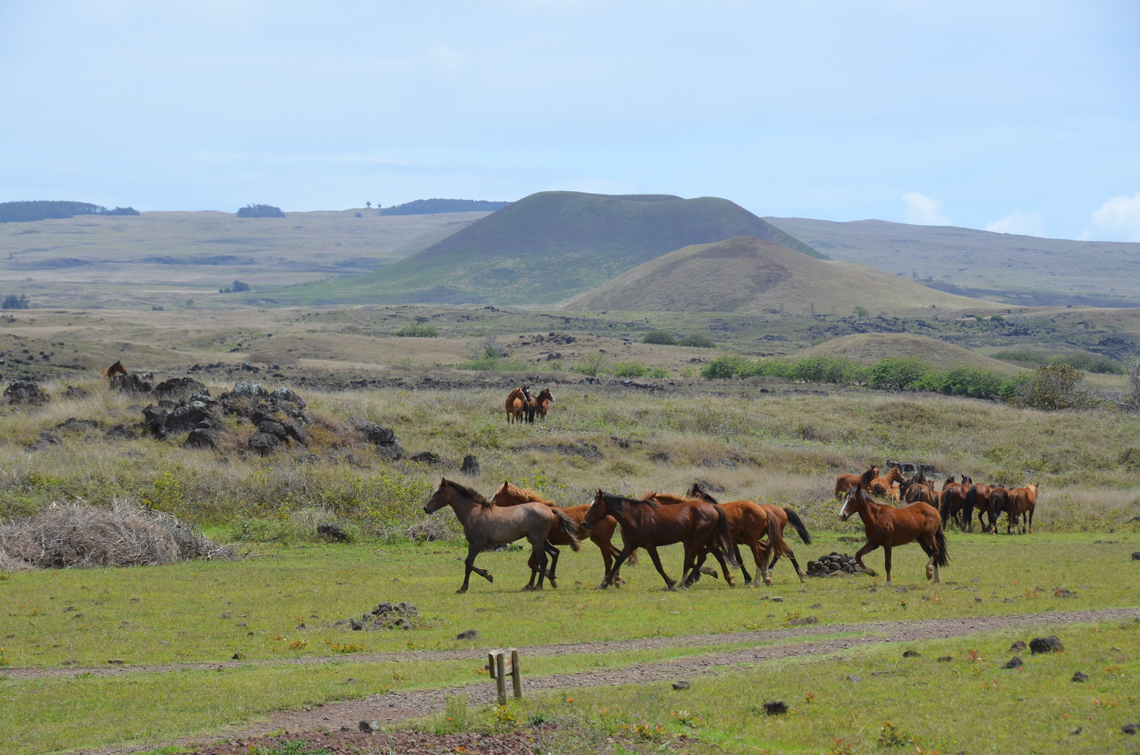 Our guide Patricio took us up on a short hike to the crater. It wouldn’t be Easter Island without some wild horses running through the park being herded off by management.