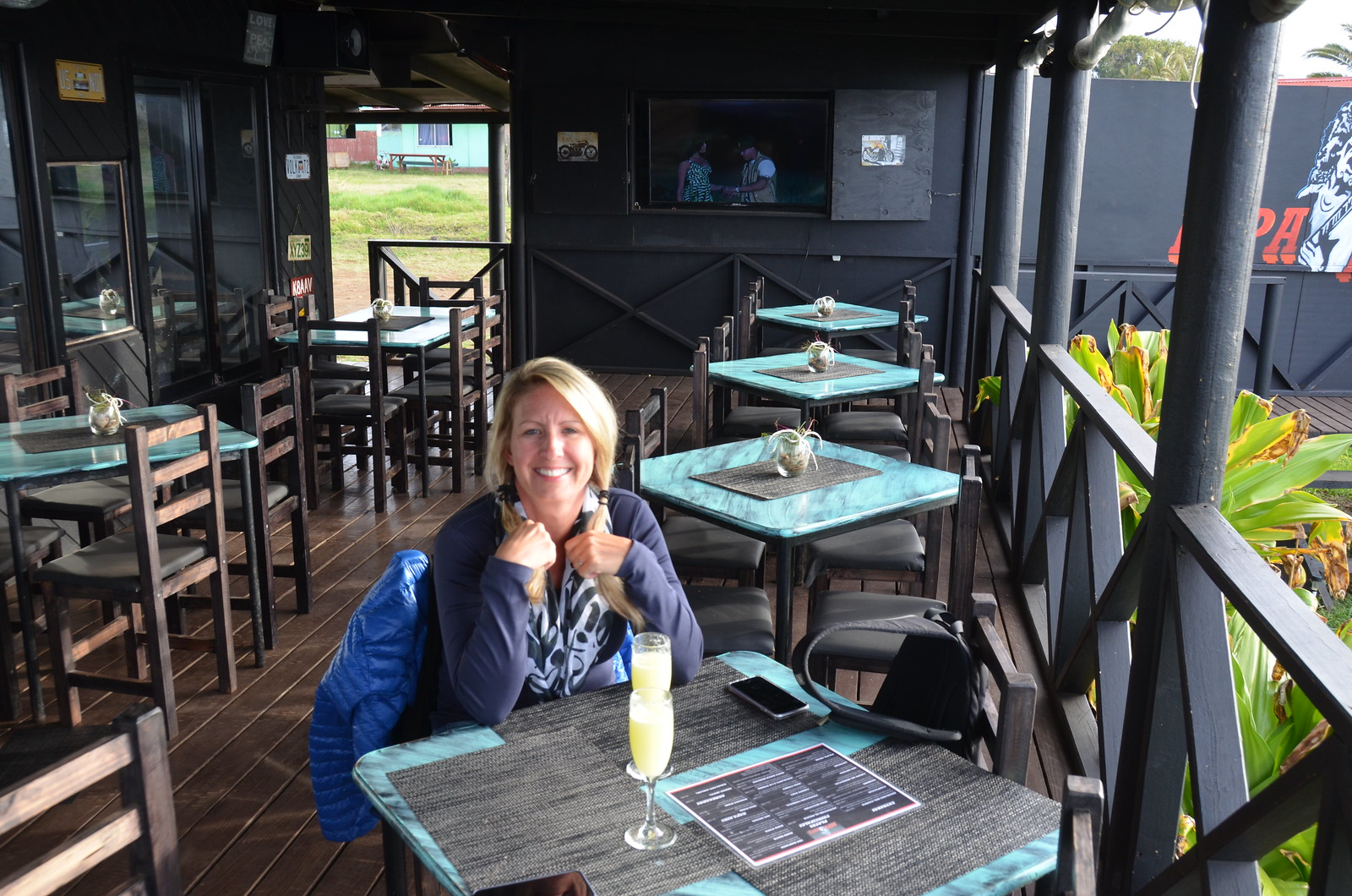 We dropped off our day supplies and immediately headed out for a sundowner cocktail. We ended up at the Rapa Rock Bar; which was recommended to us by one of the LATAM flight attendants as the IPC aircrew bar. It completely fit the bill of an aircrew bar. It was 5 minutes beyond every other waterfront restaurant / bar, with prices that were 20% cheaper. It was also totally deserted when we enjoyed Pisco Sours’ on the deck.
