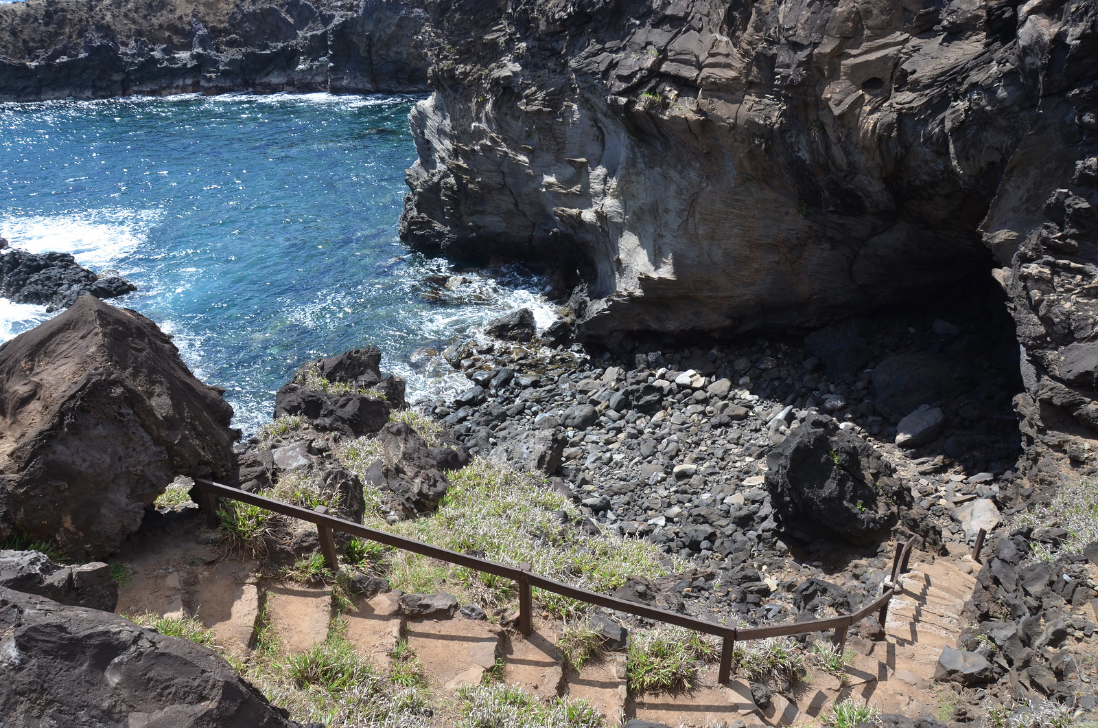 The underwater cave was used as a stop over or eating point on boat travels around the island. There were painted symbols inside the cave. Of course, as with many things around the island, there were hazards due to erosion from around the cave entrance (falling rock).