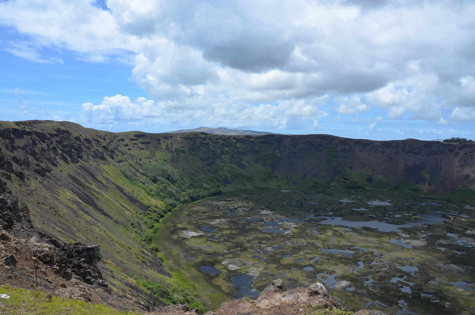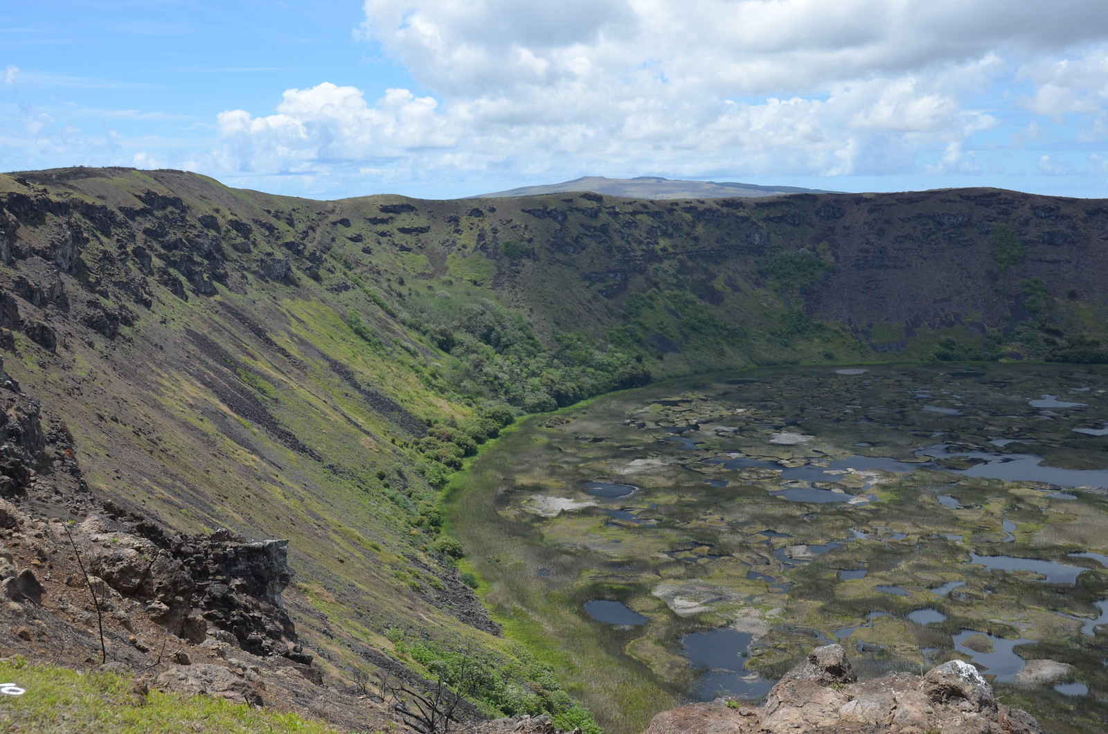 We followed the path over to the Orongo crater. It was previously filled with edible fruits and vegetables that had been planet in the event that the fishing was not going to continue. There were still some fruit trees in the crater (non accessible). It was a pretty stunning view from the top. The last volcano crater I was lucky enough to be in was the Halehakala National Park on Maui, Hawaii, USA and the vegetation did not look as rich as this particular location.