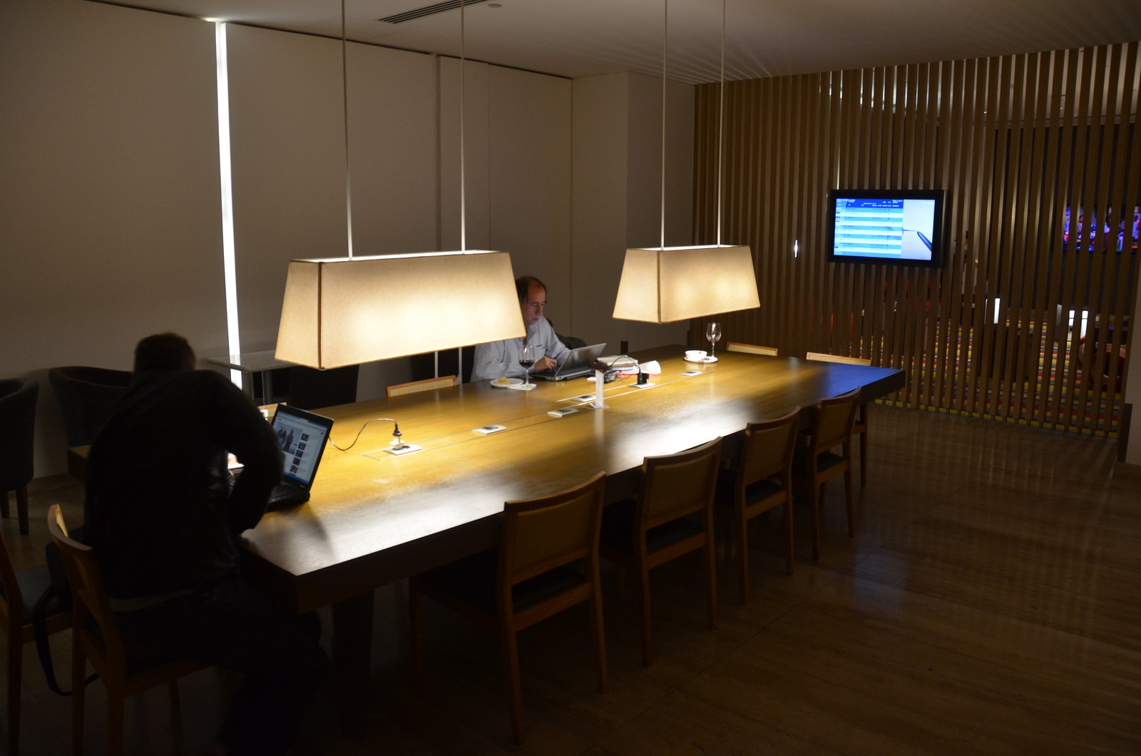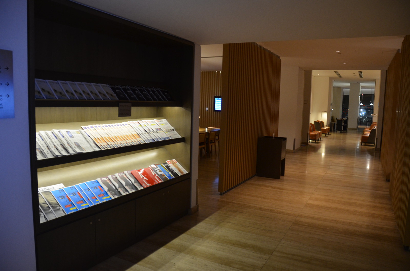 The lounge itself was a dark space as a result of the late evening visit time that we had. While this is appreciated for your circadian rhythms for the overnight flight you’re likely to be departing from here, it doesn’t necessarily make for a bright environment for working or reading.