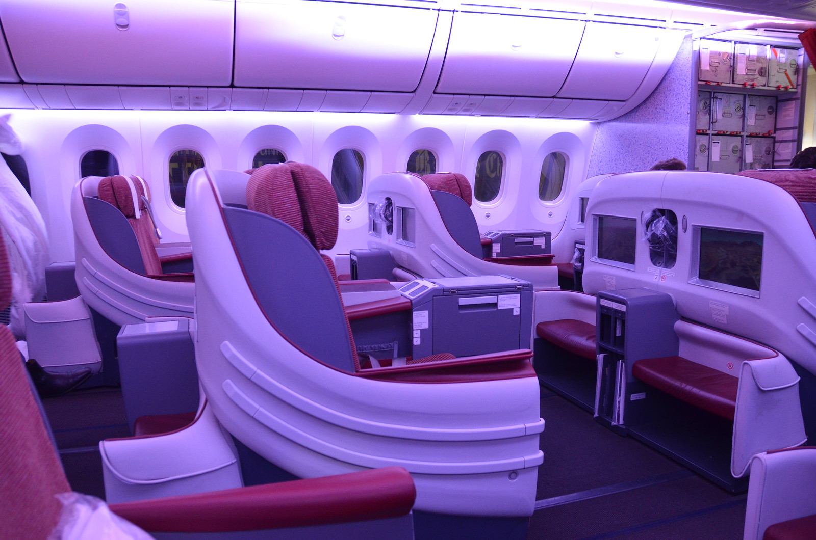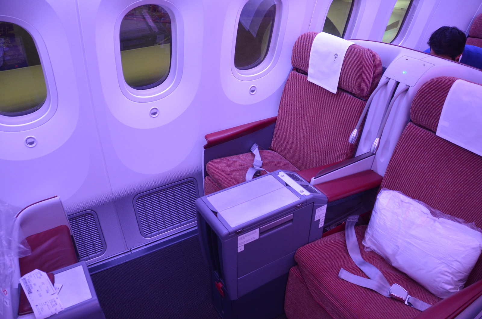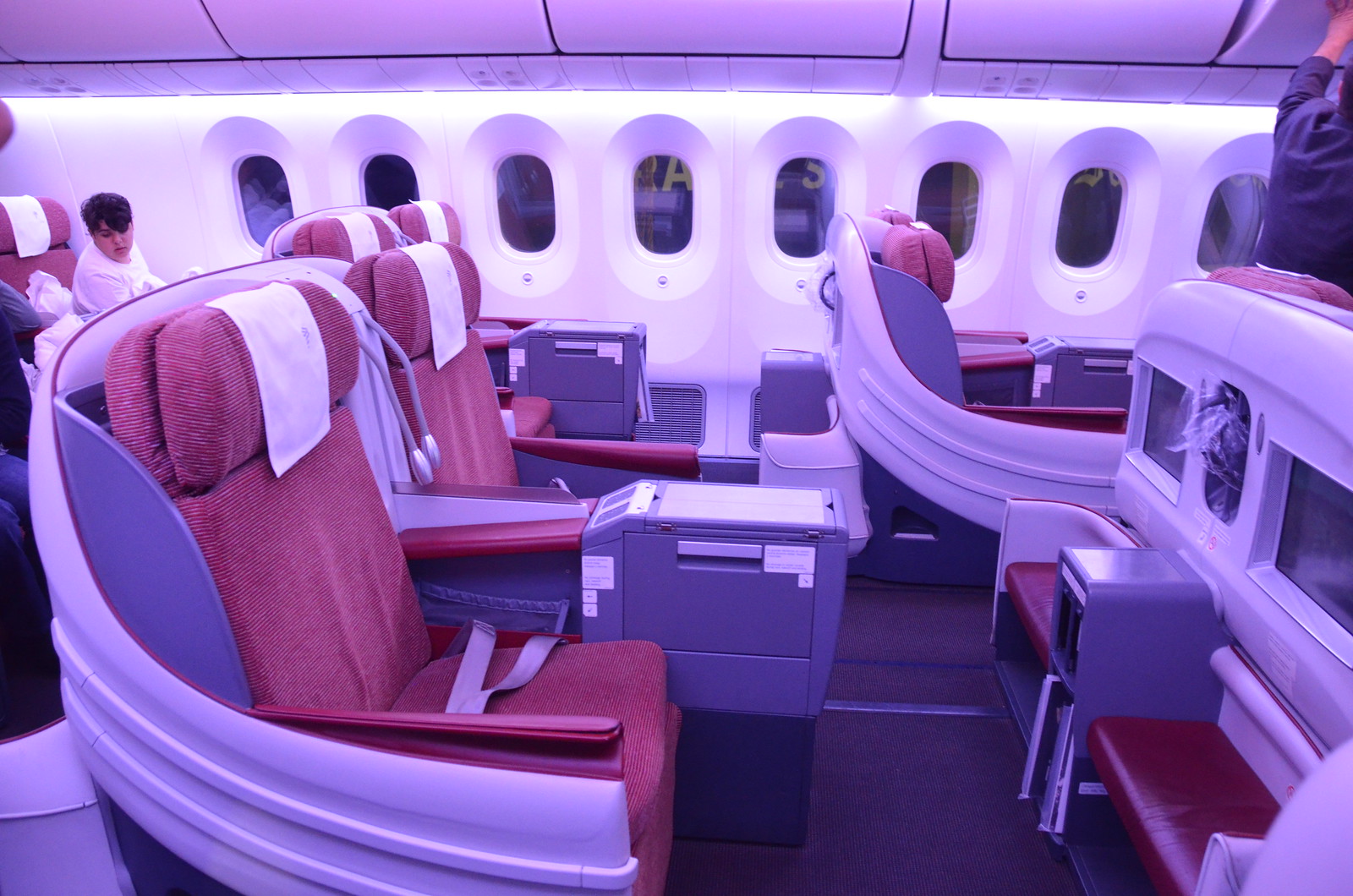 The configuration is slightly different on the LATAM B787-800 versus the B787-900. The LATAM B787-800 has 5 rows of business class, split at row 3 with a passageway and series of exit doors. By comparison, the LATAM Boeing 787-900 business classs cabin offers one large cabin with five rows of business class with no break in the cabin. We turned left and found our way to seats 2G/L and settled in.