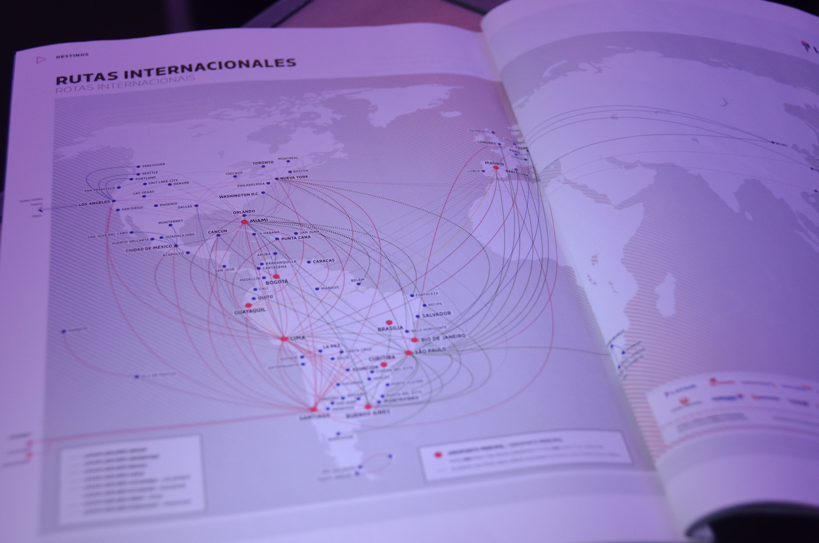 We got underway from Santiago quite quickly and climbed up to altitude. I happened to look at the in flight magazine and the route map. I also browsed the in flight entertainment system. I didn’t bother to get up to see what the “free amenties” were. . . .