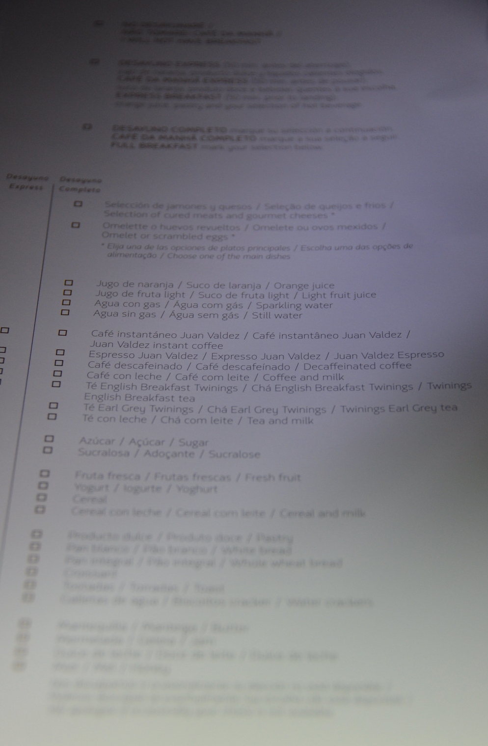 I completed the morning breakfast card and left it for the breakfast order towards the end of our flight.