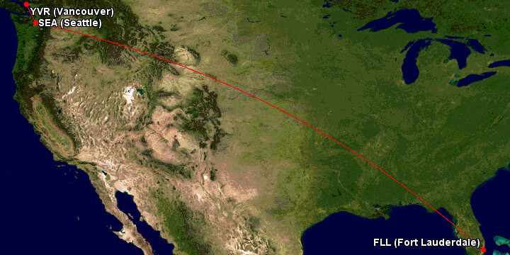 I happened to locate a reasonable fare with Alaska from Vancouver to Fort Lauderdale via Alaska’s hub in Seattle at Seattle Tacoma International Airport. Like all Alaska Airlines fares, it earned 100% Elite Qualifying Miles and and 50% Redeemable Qualifying Miles MVP bonus into Alaska Mileage Plan. While Alaska Airlines isn’t known for being the cheapest carrier, it was the most direct route from the Pacific Northwest to the Florida State. At the time, it was Alaska Airlines’ longest distance flight. My flight came to $309 USD in base airfare and $122.95 in taxes and fees for a reasonable total of $431.95 USD. I was even able to use a $100 USD discount code from our past flight delays with Alaska Airlines on our Mexico – Easter Island adventure. I credited these flights to Alaska Mileage Plan.