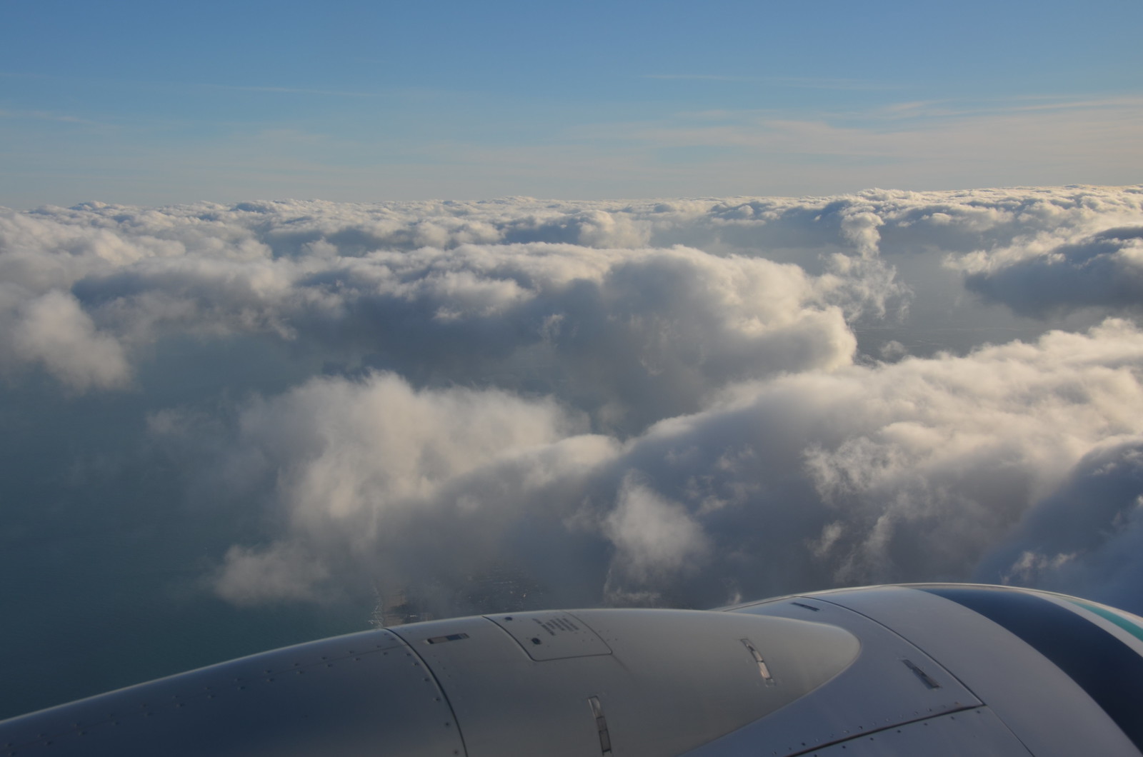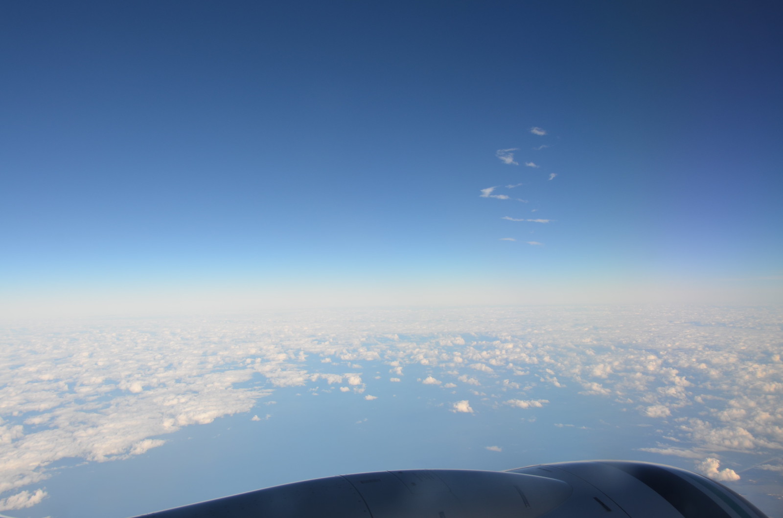 In the last hour of our flight, the captain came on to announce that a Rocket Launch was about to take place as we passed over Cape Canaveral Launch station. Unfortunately, the launch was probably spectacular from the flight deck, but I wasn’t able to get any view from the back thanks to the angle. I did get to see some interesting circular cork screw clouds (pictured in mid upper right) over the launch site which gradually disappeared as we passed through the area. The launch was a rocket taking up a satellite for the country of Luxembourg.
