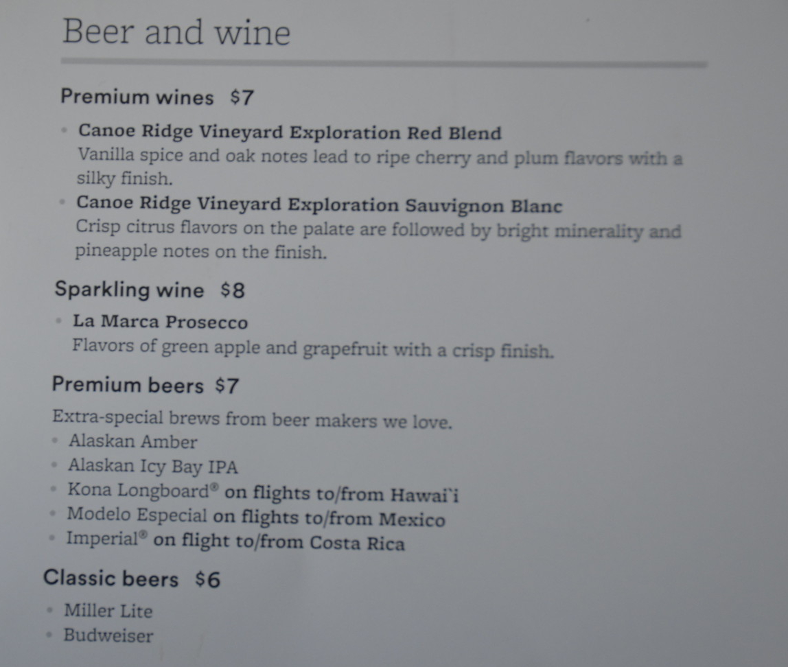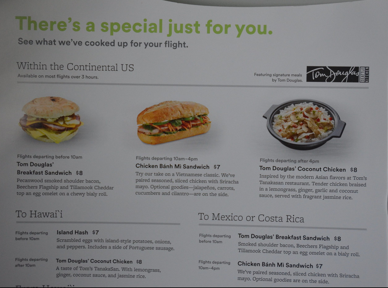 The buy on board menus and drink lists were as follows. It featured signature meals by Tom Douglas.