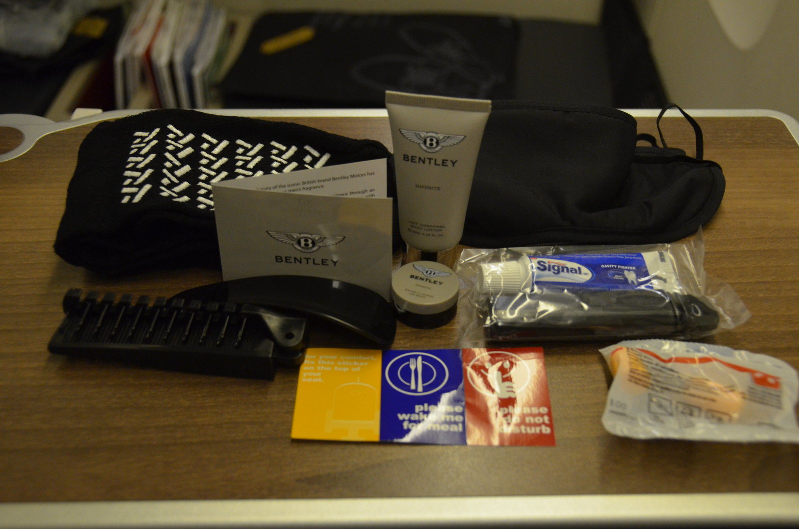 The amenity kits were dropped off. The amenity kits were branded as “Bentley” fragrance amenity kits. There were mostly useless things in here. The Bentley branding was limited to a brochure, lip palm and a small tube of body lotion; a pretty chintzy offering that’s was completely forgotten about after I took the trip.