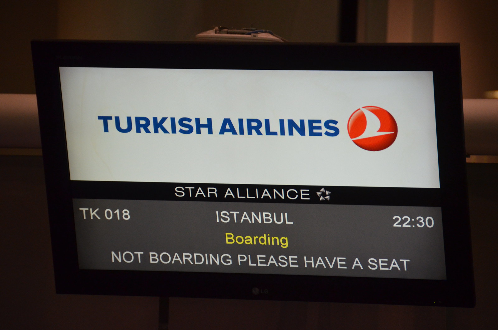 While we were waiting near the front of the maze to board, we were charged by about thirty families with small children pushing to the front without despair. Eventually, children, elderly, business class and Turkish Elite and Star Gold, were all called to board all at once. It was about 90 people trying to get on the flight through a crowd of the remaining 150. It seems like the gate agents had lost interest in bothering to separate the groups.