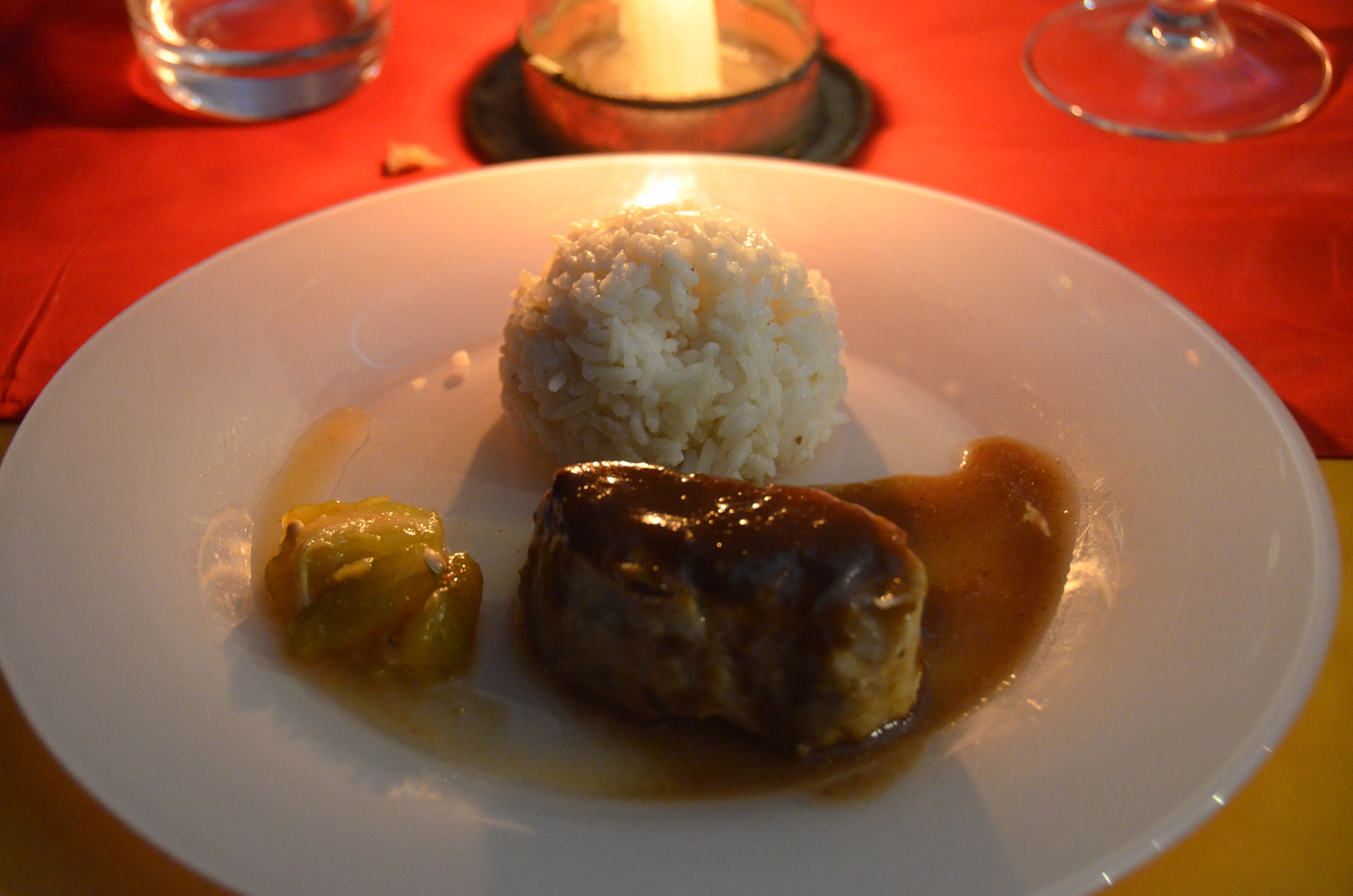 The main and fourth course was King Fish with Tamarind Source, Cardamon Rice, Mbirimni Pickle. The fish was exceptionally cooked; just under so that it stayed juicy and elegant. The rice was lightly scented.