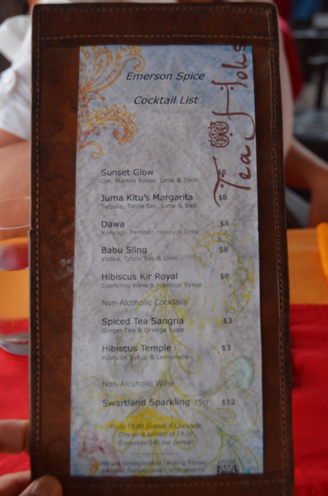 When we made it to the top, we settled into our experience at Emerson Spice Restaurant. Guests are encouraged to come at sunset at 6 PM for a sunset sundowner cocktail.