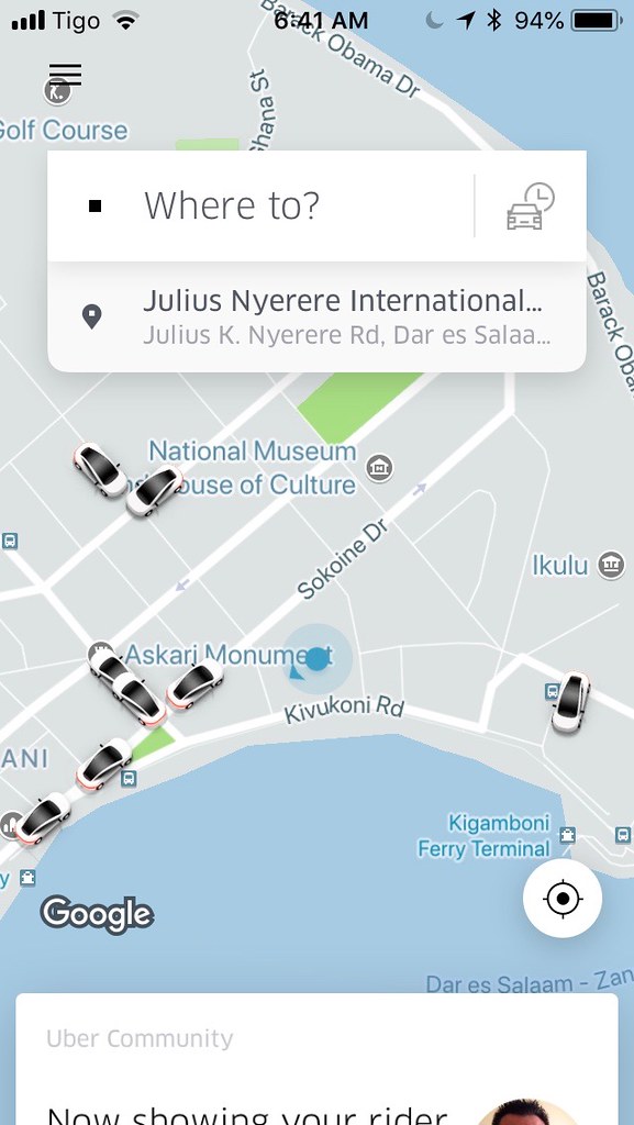 We took an Uber X from the Hyatt Regency Dar Es Salaam – The Killimanjaro to the airport. There were lots of cars available at 5:30 AM when I first checked. Unfortunately, there were no Uber XL’s available, so we stacked our bags on the front passenger seat of a small car and throughout the trunk.