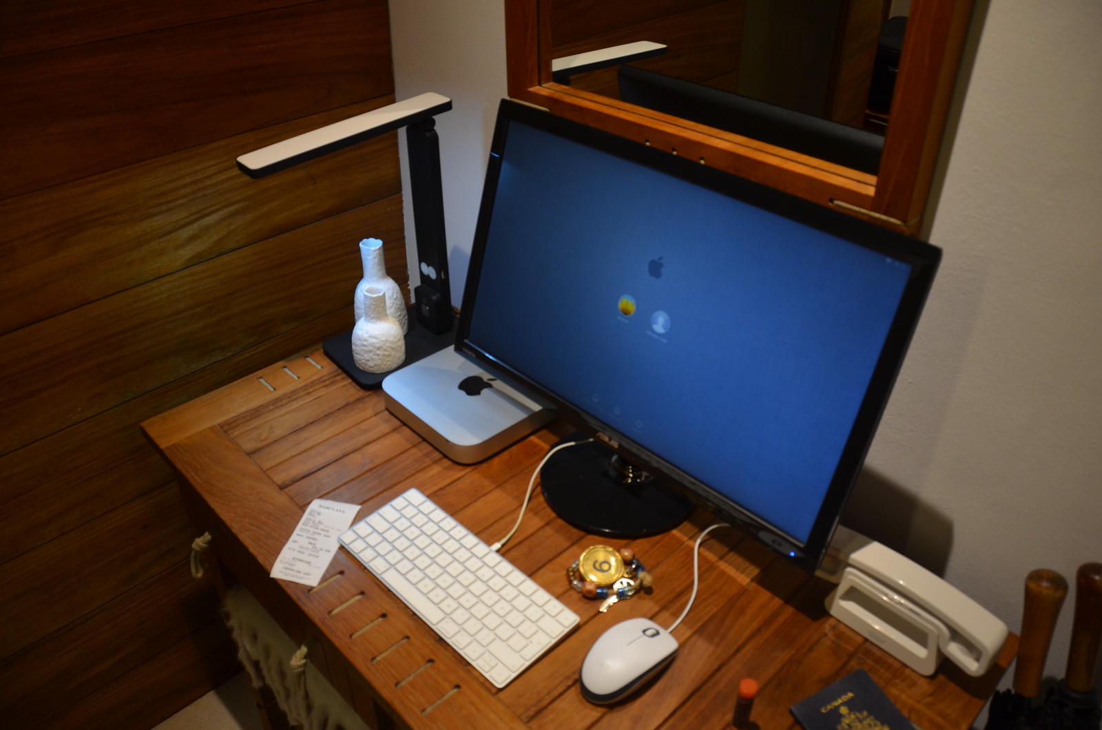Topping off the room was a small Mac Mini computer. This was handy for the online check in for the way back…