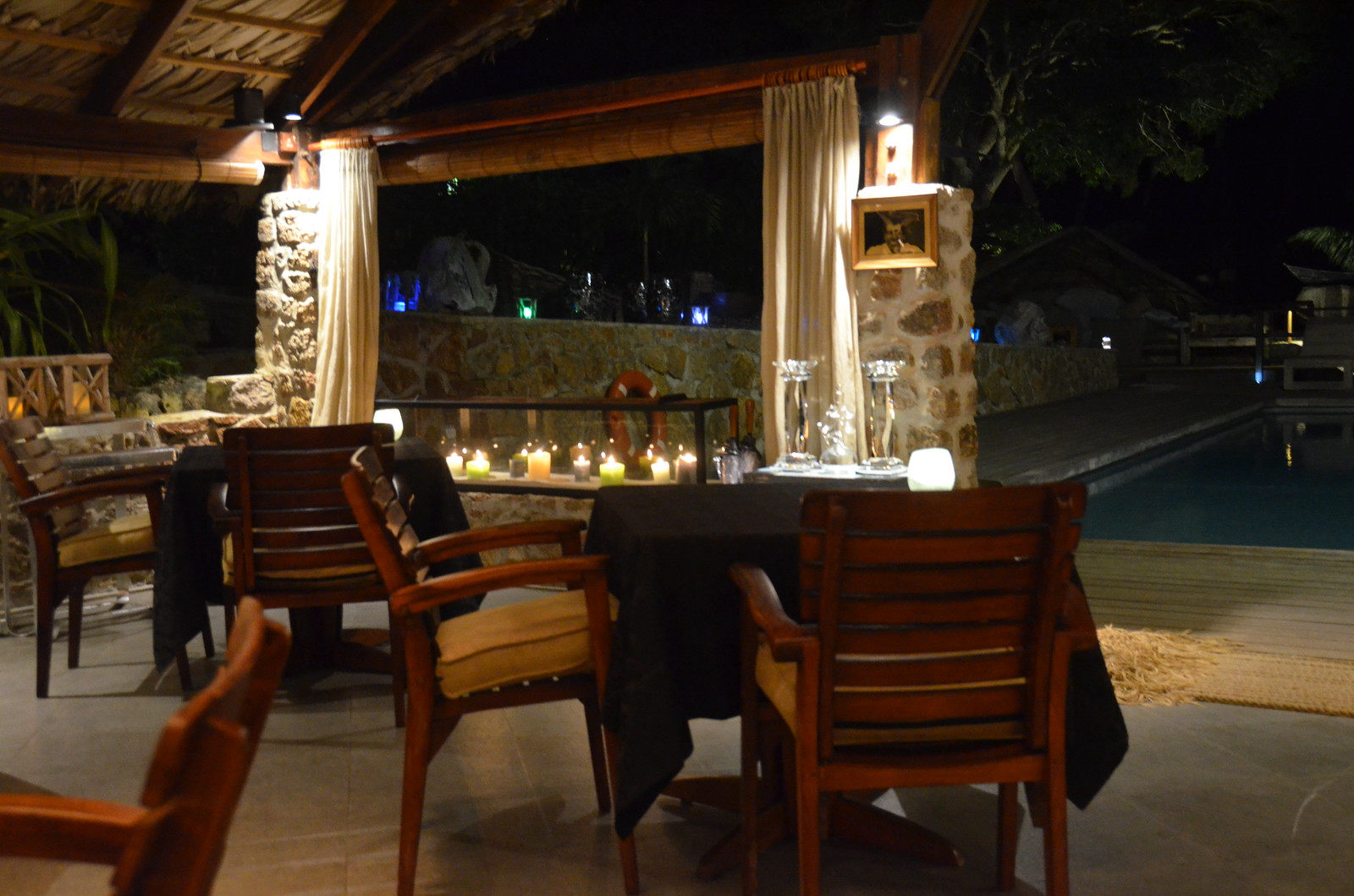 The Restaurant is in a covered outdoor space next to the pool. It offers a really pleasant open air dining experience.