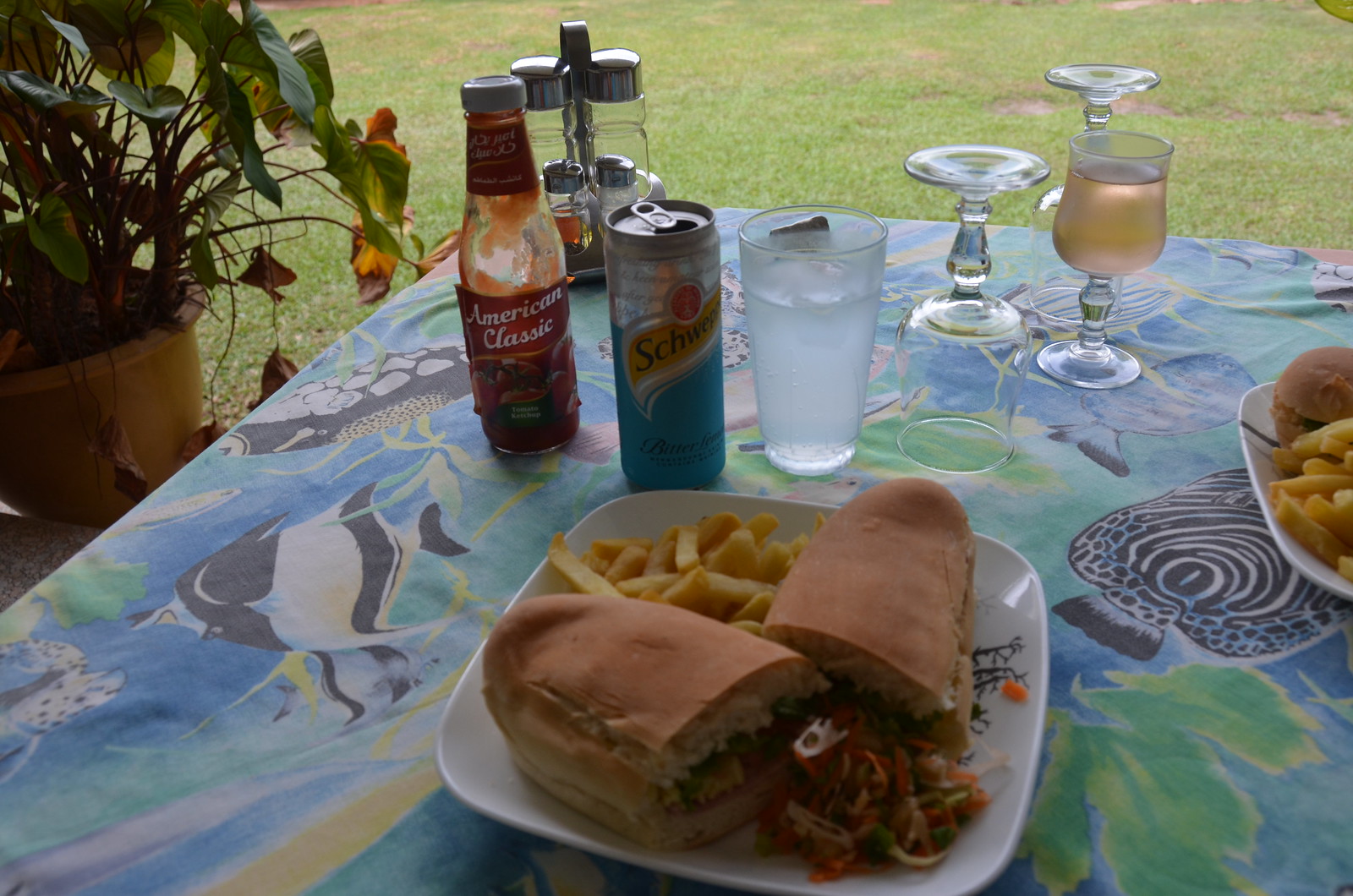 When it was time for lunch, we ended up having a rustic lunch at Le Chevalier. It’s a name that imagines up an old era castle but instead it’s actually a small bed and breakfast just off the beach. Despite this, we had friendly service and a small beach lunch al fresco. There were several sand crabs in the area that were pretty active at scampering across the grounds, making for some entertaining lunch viewing.