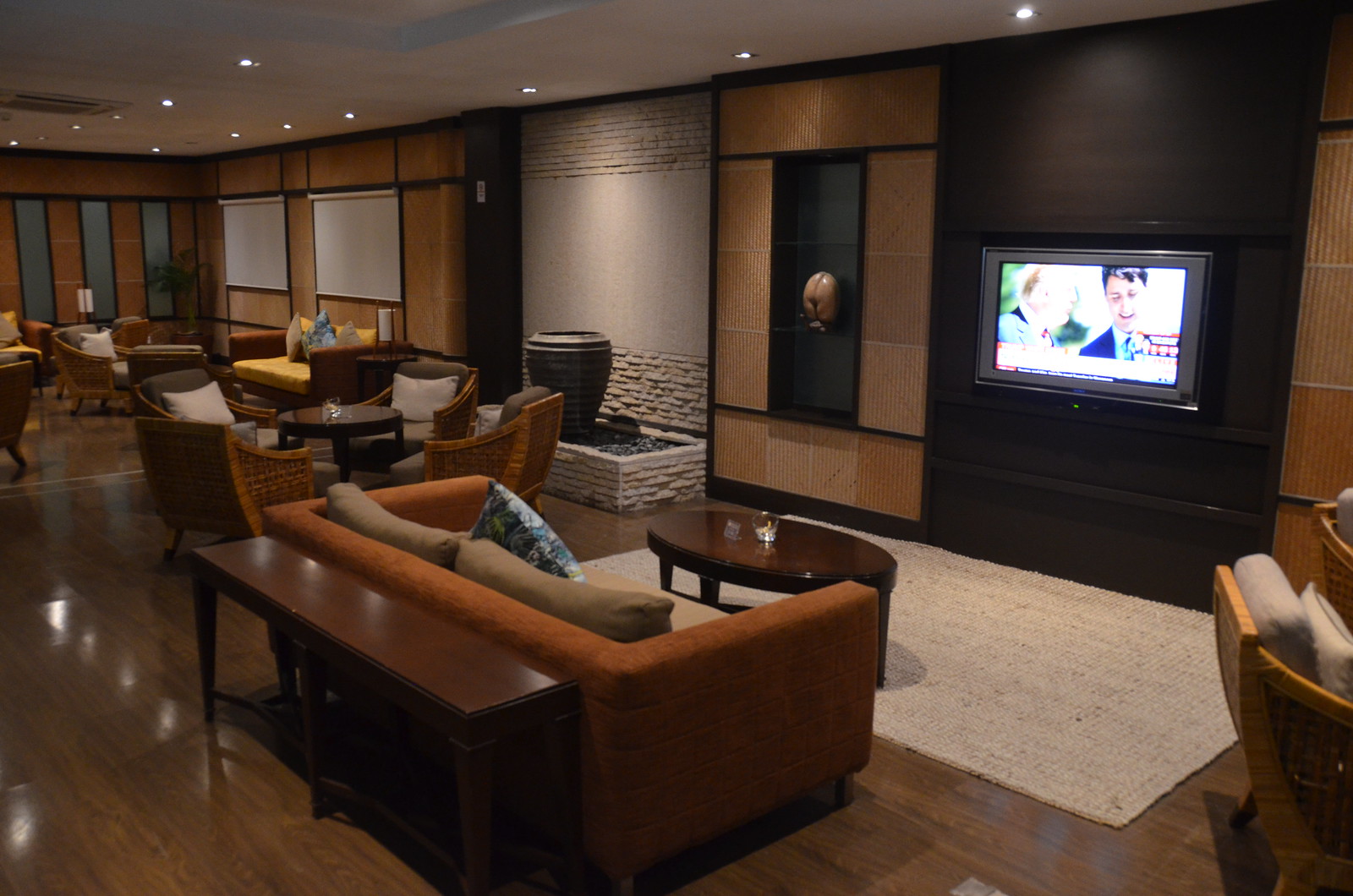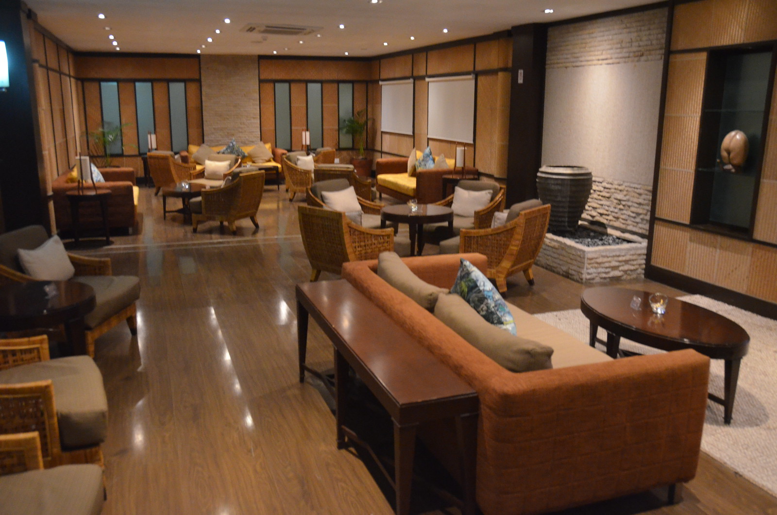 The colors of the Salon Vallée de Mai Premium Lounge were of dark earth tones. The layout of the lounge was in a “U” shape, with many comfortable lounge seating areas.