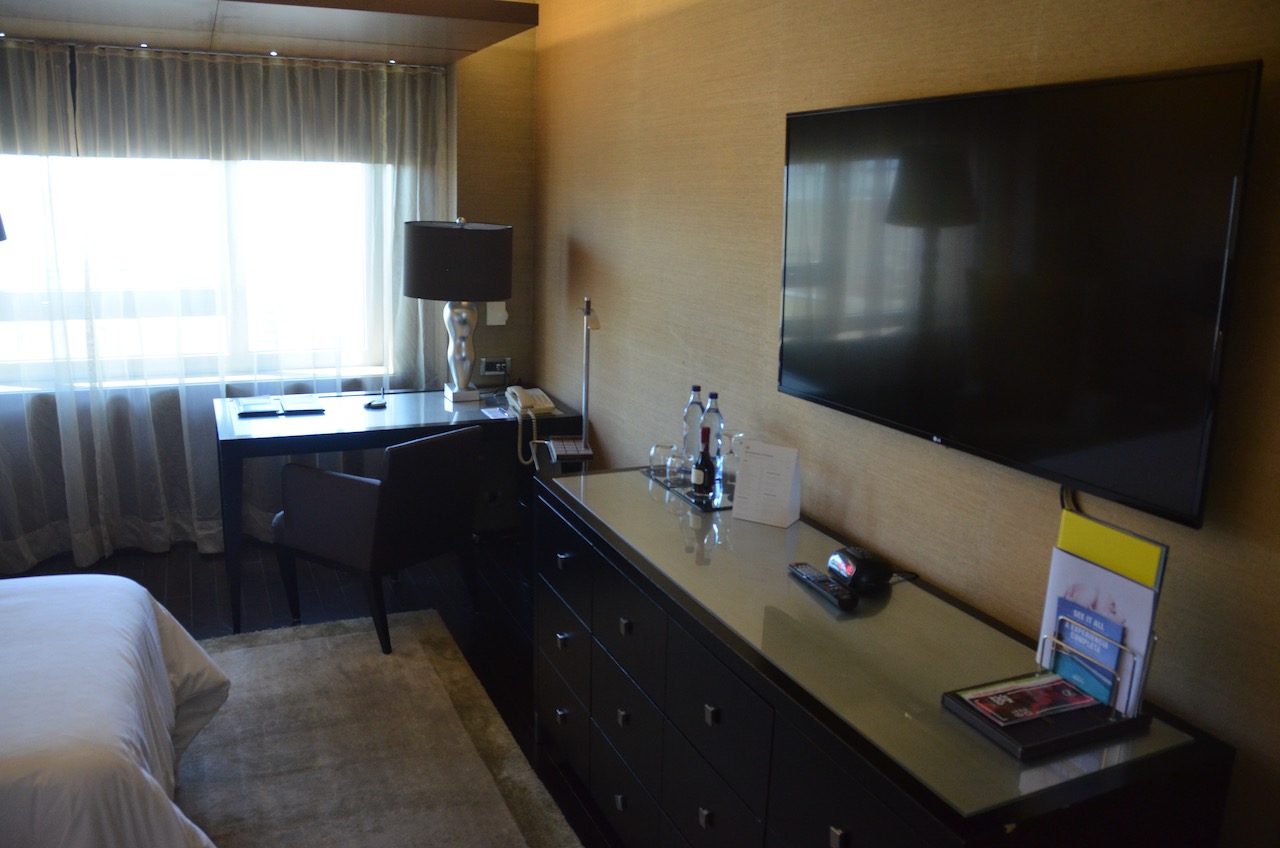 Courtesy of Marriott Bonvoy Titanium Level status, we received a higher floor soft upgrade to a “Club Level” room on the 22nd floor out of a 25 floor building. I was travelling with my son and wasn’t really expecting or hoping for any wonderful suite upgrades. While I would have appreciated it, I would have preferred a two double bed configuration and most suites have 1 single bed, which would have meant sharing a bed with a trashing around teenager.