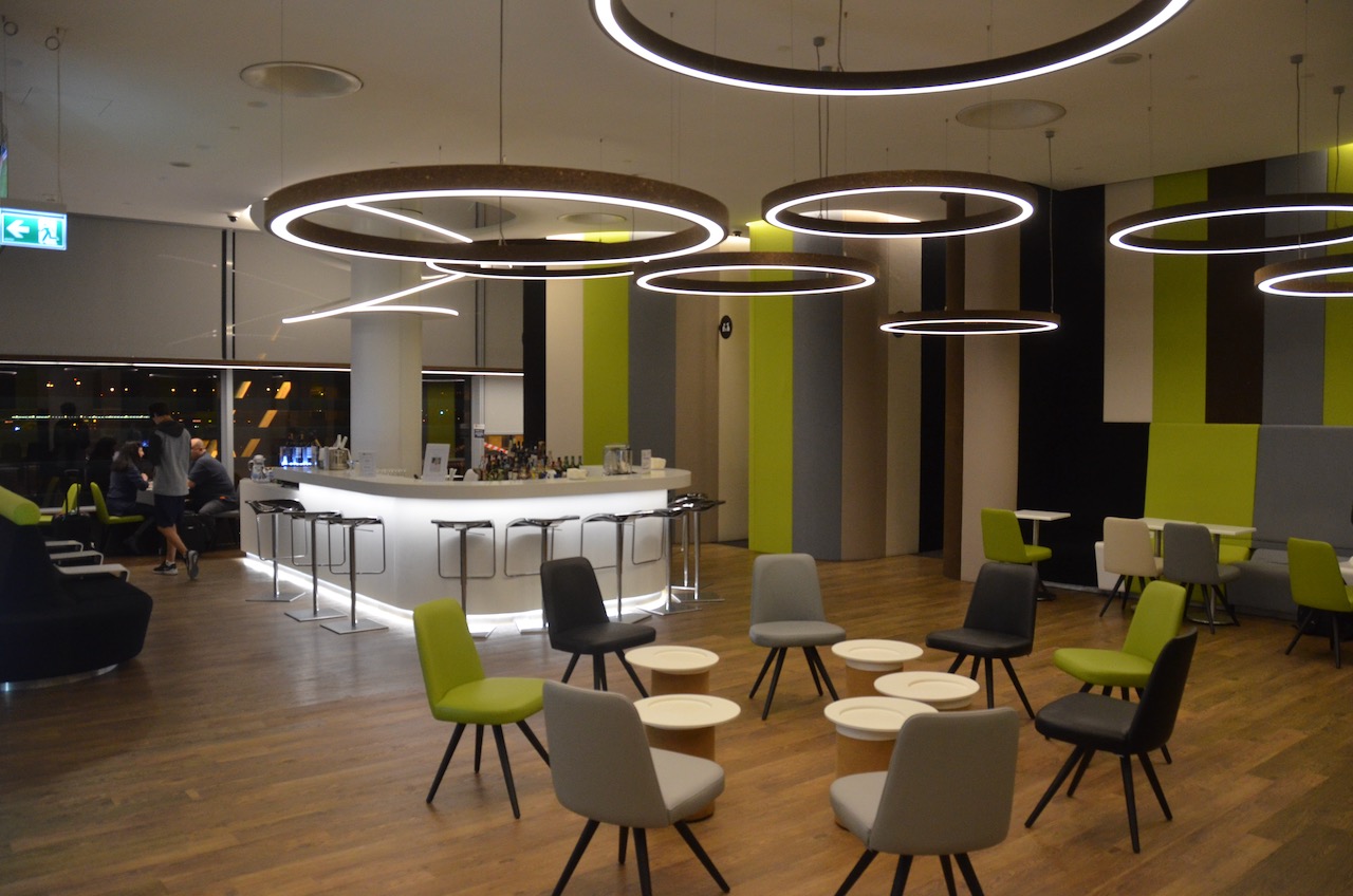 Our first impressions of the lounge were that it was average for an international departures lounge. I’m not sure what they have going on with the “Kermit the Frog” green décor and it didn’t particularly resonate with me compared to other like spaces. Perhaps it looks better in the daylight?