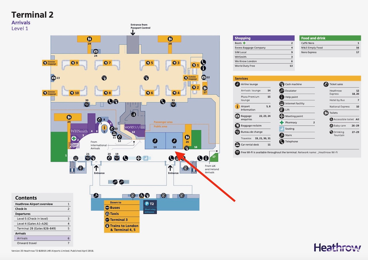 If you are arriving into London Heathrow Terminal Two, take a left after navigating to the public side and you’ll find yourself in front of the arrivals lounge area.