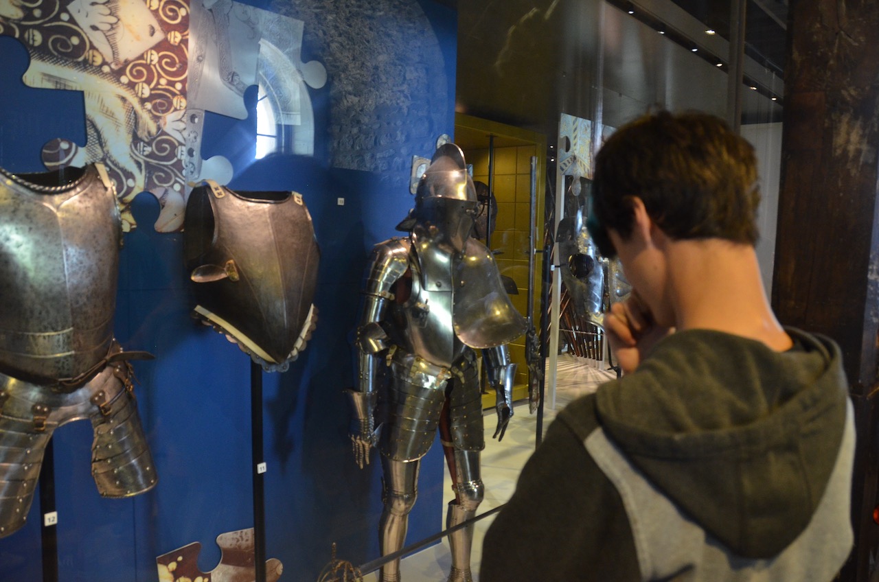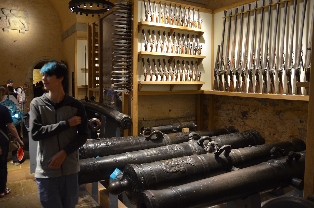 Once inside the tower, there was every type of weaponry used over the many eras. Junior was thrilled to be able to move through them all.