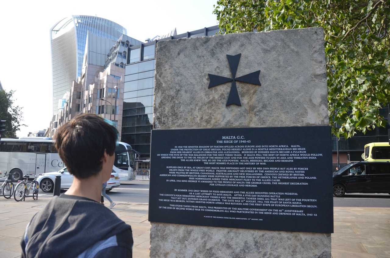 We headed back over the Tower Bridge, back past the Tower of London over to Monument. It’s an attraction that’s always escaped me whenever I’ve come to visit. We left the Tower of London again and headed into town. We past by the Maltese monument commemorating the wars of times past.
