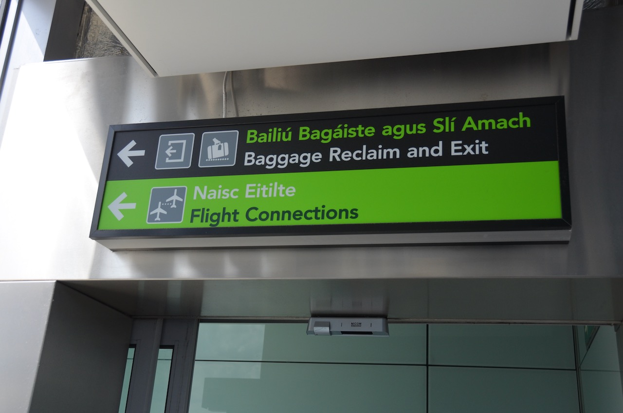 We were stamped into Ireland at the airport, having a received a green passport stamp. We had our first sighting of Irish or Gaelic language on the signs at the Dublin International Airport.