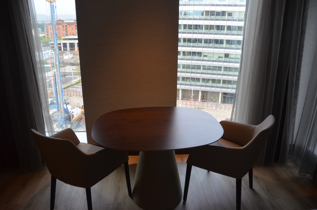 The room had a small table and chair set up, with a table that was easily large enough for in room dining.