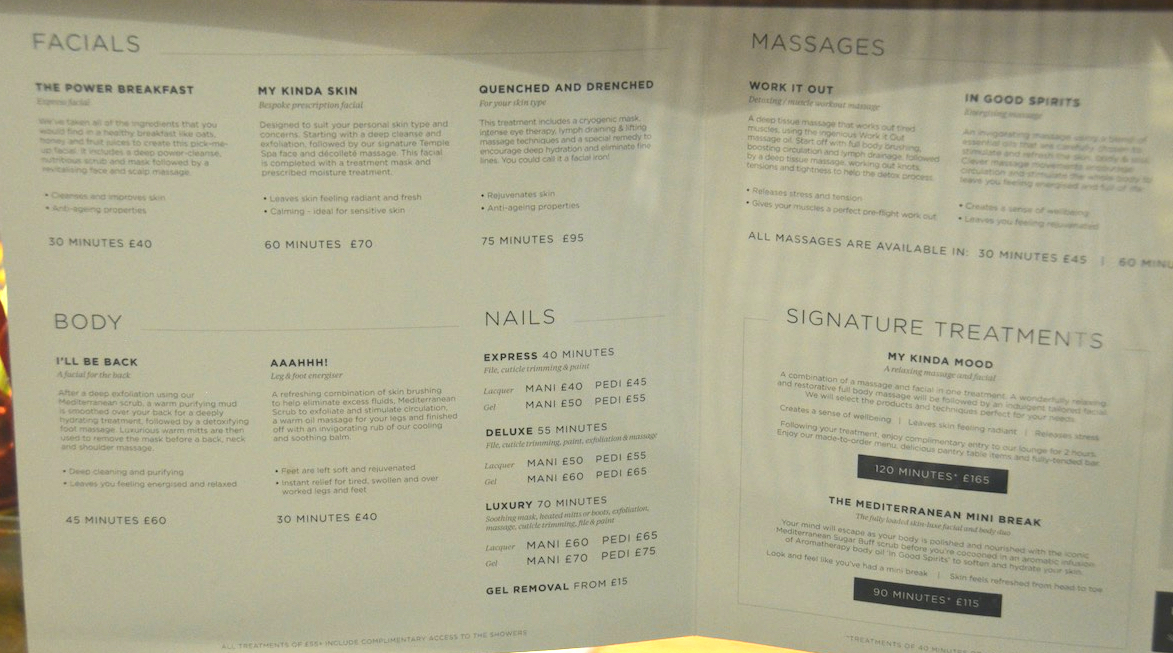 The No1 Lounge also offered a spa service at the back of the lounge. These services were for payment. Although, I can’t imagine many people wanting an impromptu spa treatment in this chaotic environment while at the airport.