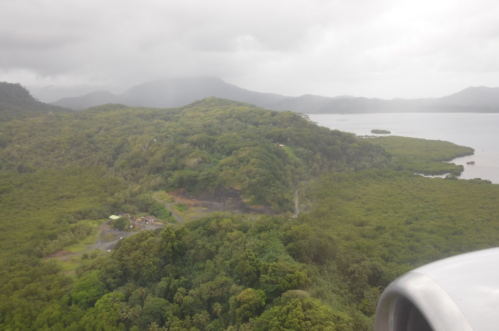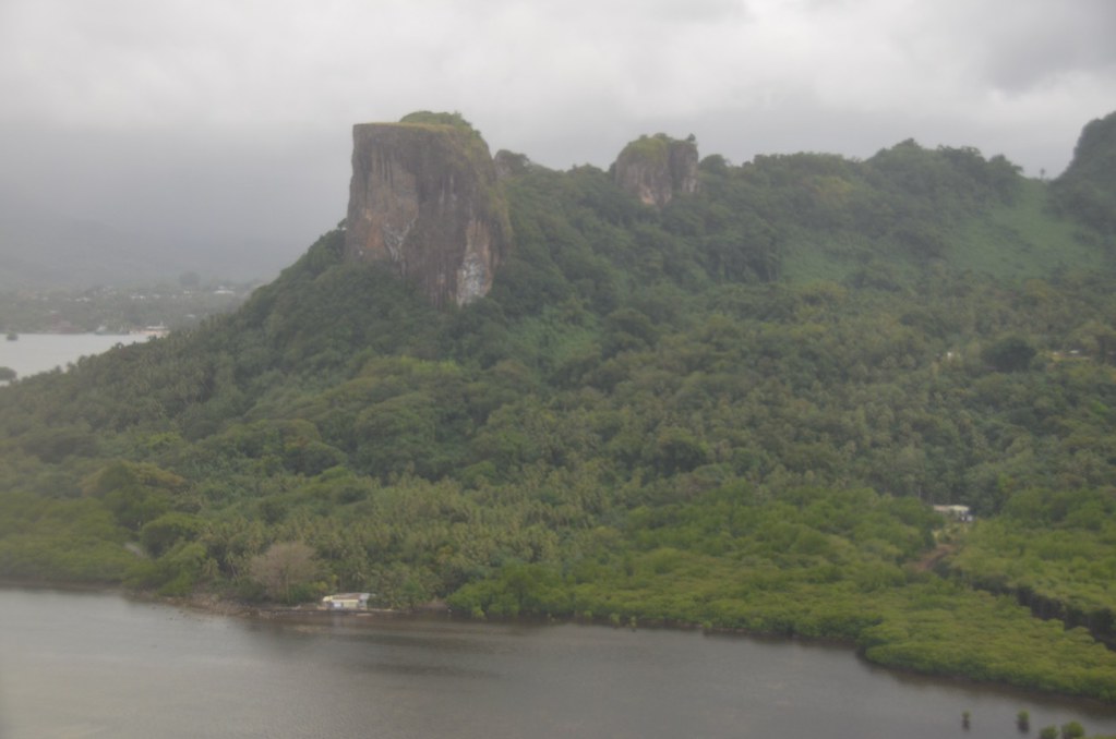 On our final approach, we had a good view of Paipalap, or Sokehs Rock. Sokehs Rock is over 100 vertical meters (328 ft) of exposed basalt form the upper portion of a gigantic volcanic plug that juts from the north end of Sokehs Mountain. It looms over Pohnpei’s harbor. It’s a unique feature to be spotting on it’s way into an airport.