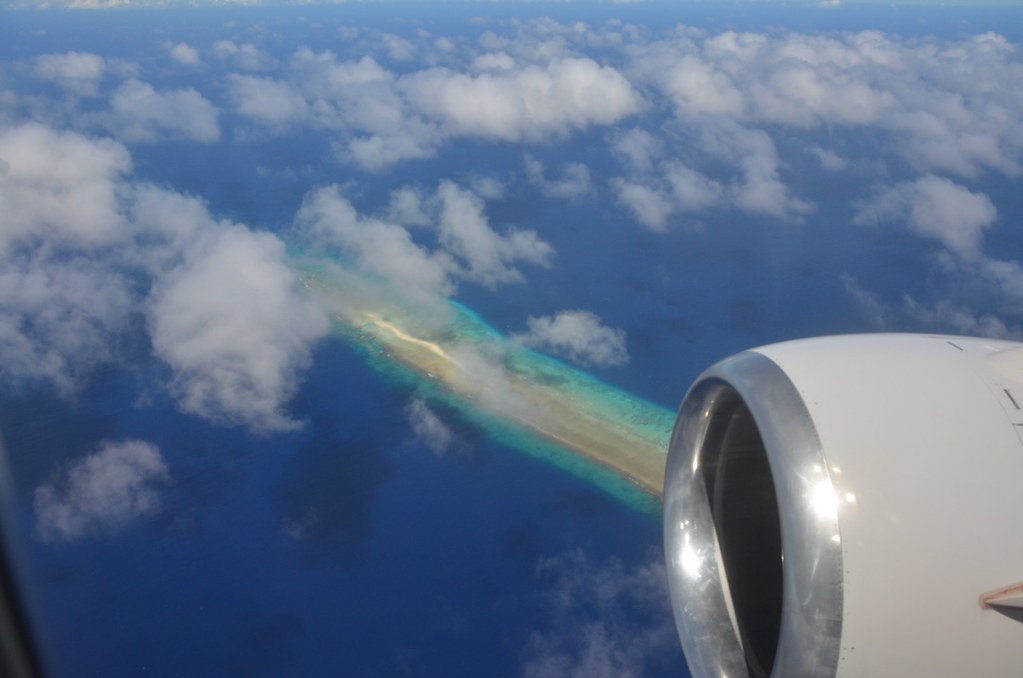 I was able to snap a few photos of the Kwajalein Atoll on the way out, although I was on the wrong side of the aircraft for the best and greenest looking atoll around the island. We took a hard left turn as we headed westward on our journey, meaning that I had a look at the outer reefs for this particular departure.