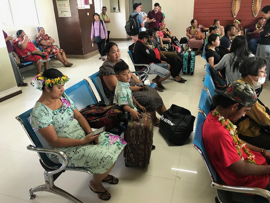 I also spotted another group of older women who appeared to be on a small group holiday. I took a look at the older women closely and happened to spot United Crew ID cards on lanyards around their necks. On closer examination, they even had old Continental stock luggage tags on their rolling luggage tags. One of them sported a Blue Lagoon Dive Shop Truk golf shirt, the place to be when you come to Truk.