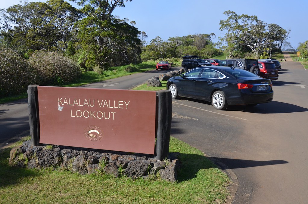 We eventually made it up to a more official looking Waimea Canyon Lookout that was marked with a proper parking lot instead of a small highway pull over. We paid a $5 USD United States Forest Service day fee for use of (all) the parking lots. We had great views here over an established lookout that was great for panoramic photography.