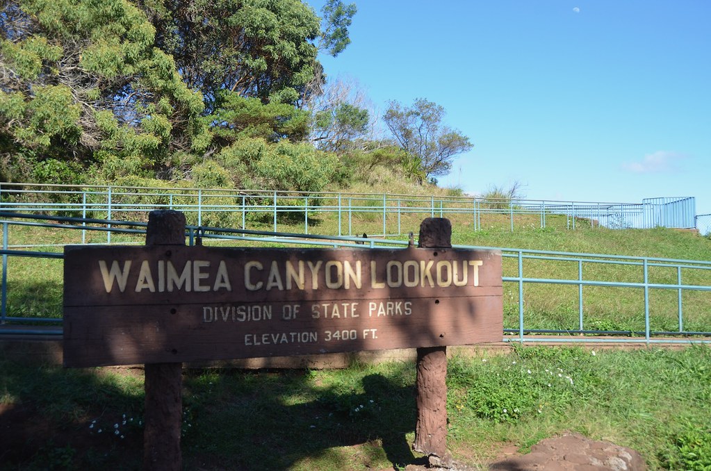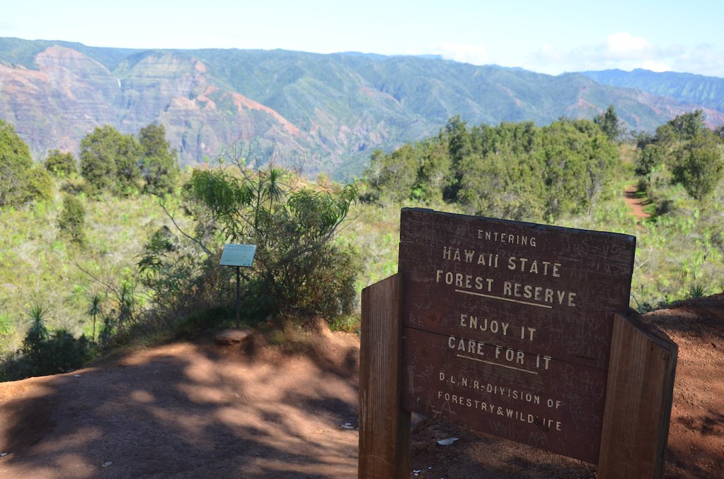 We then followed with Waimea Canyon Drive Lookout #2, which involved a small trail hike across flat terrain to some great views. It included the retro park signs from an era past.
