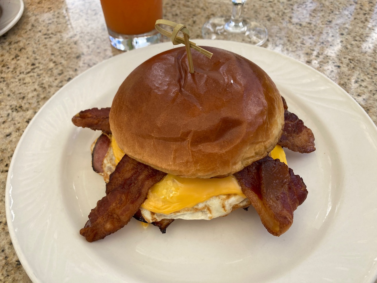 For the sake of variety, I also tried the special breakfast sandwich served on brioche, and a fried egg, with bacon, smoked ham and a pesto mayo.