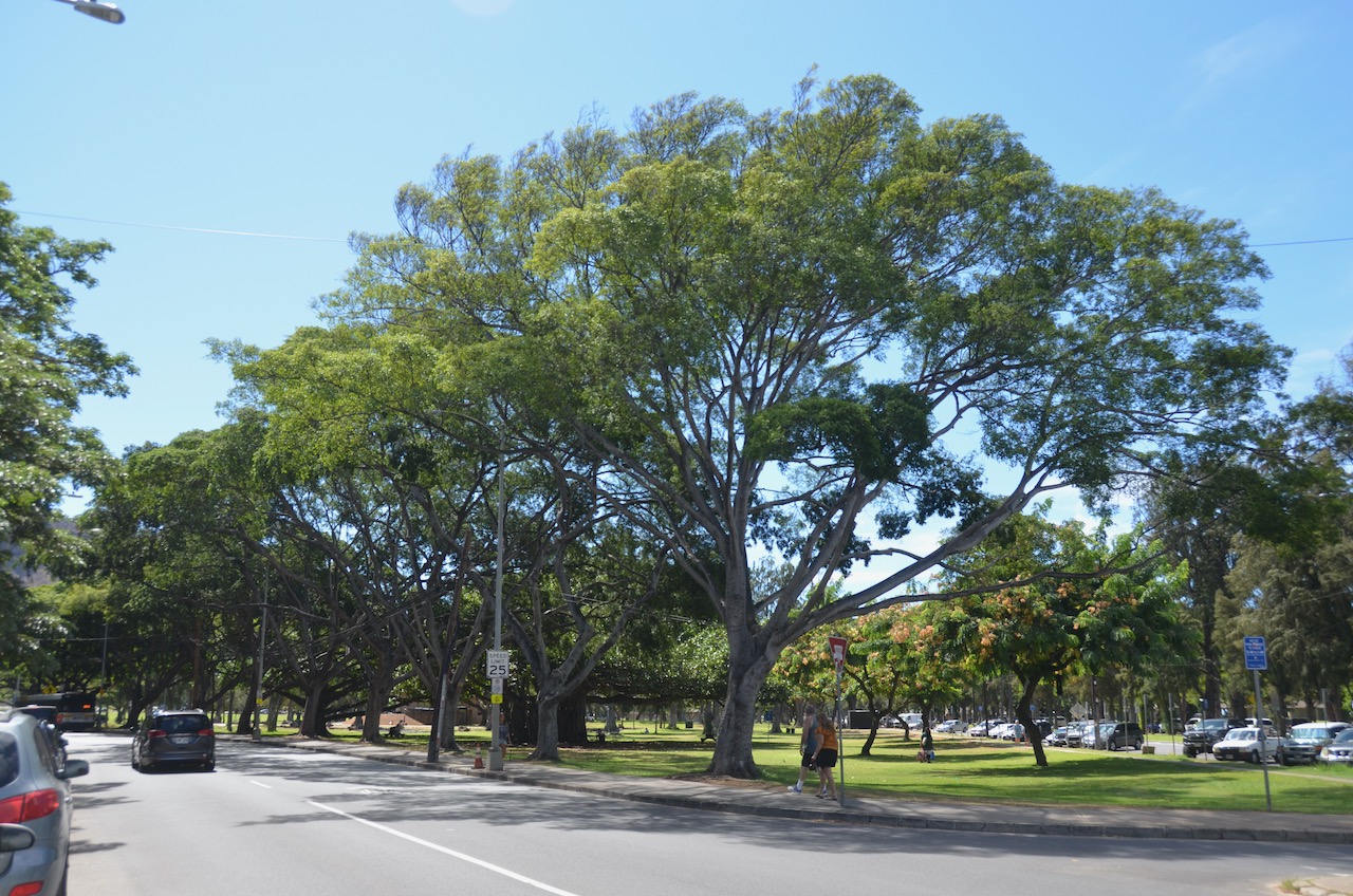 We arrived to the start of Kapi’olani Park along Monseratt Avenue. The park is a restful area near Waikiki Beach and contains a small zoo along with a lot of shade along Monseratt Avenue. In addition to being a restful area, it’s also the spot where I go to drop the rental car for free whenever I need an overnight parking spot in the Waikiki Beach zone.